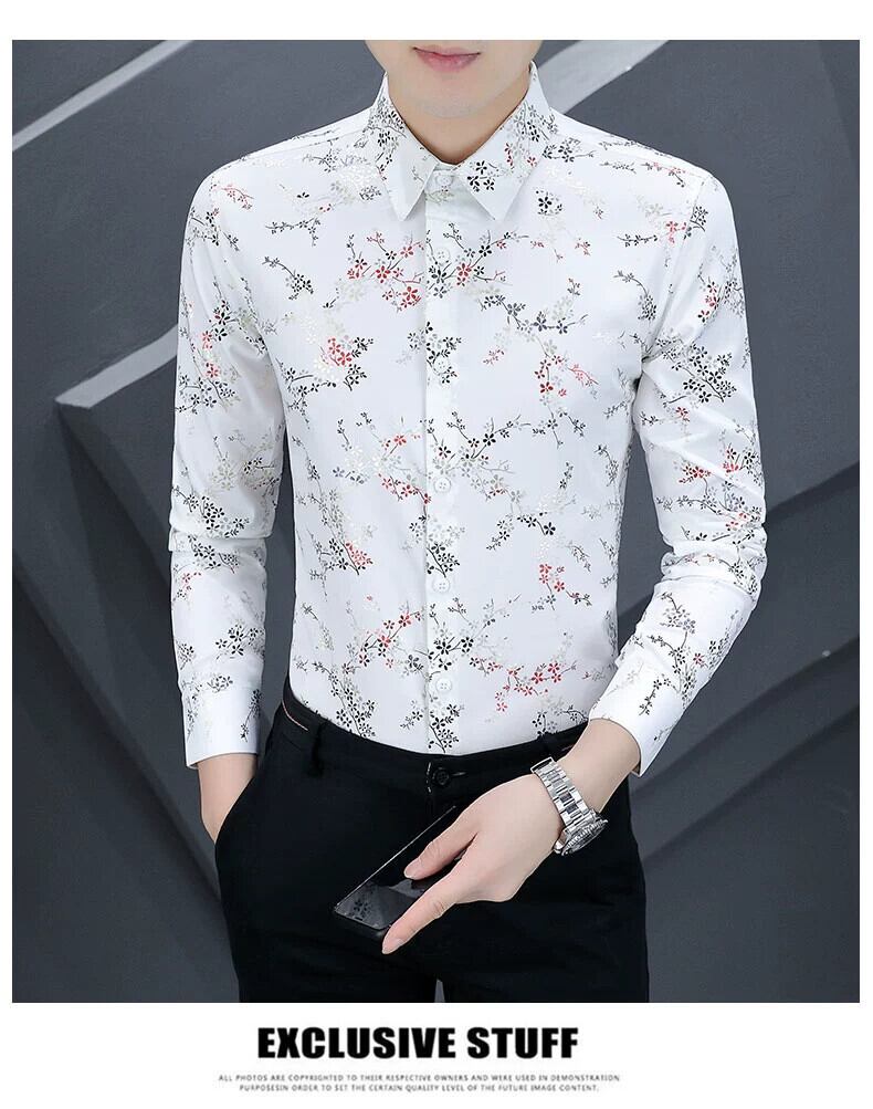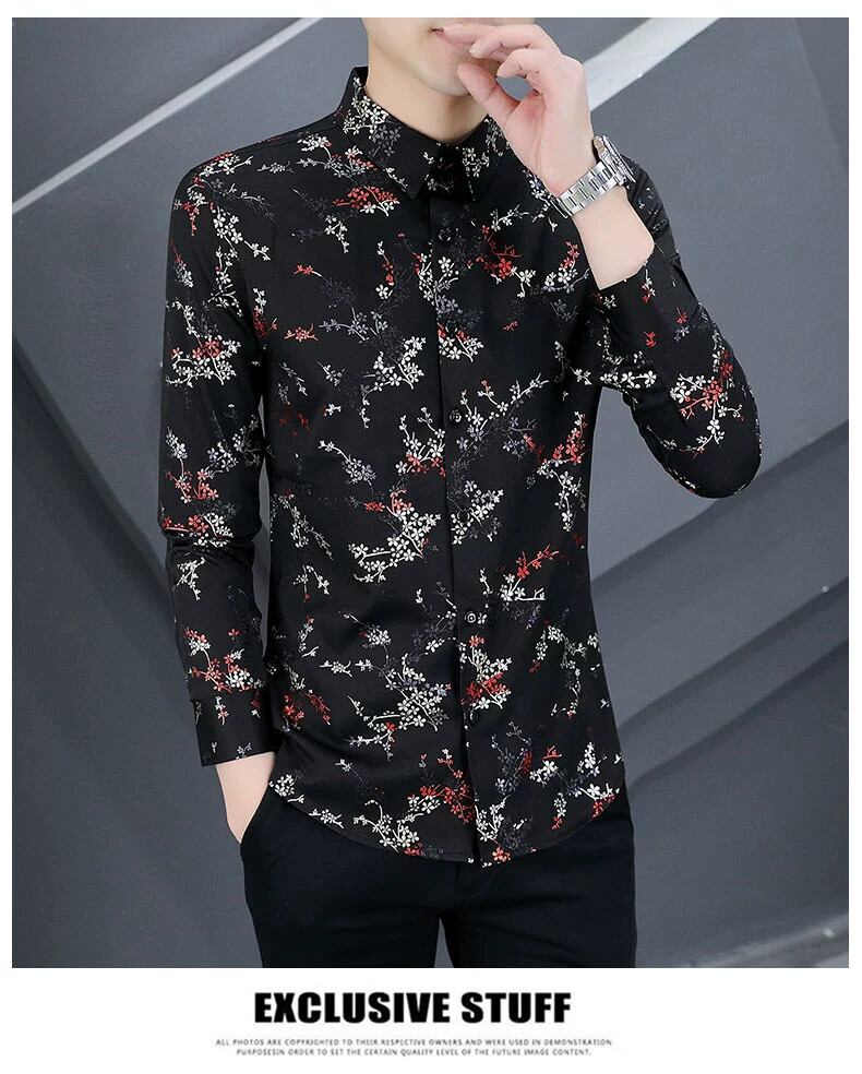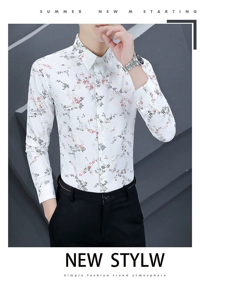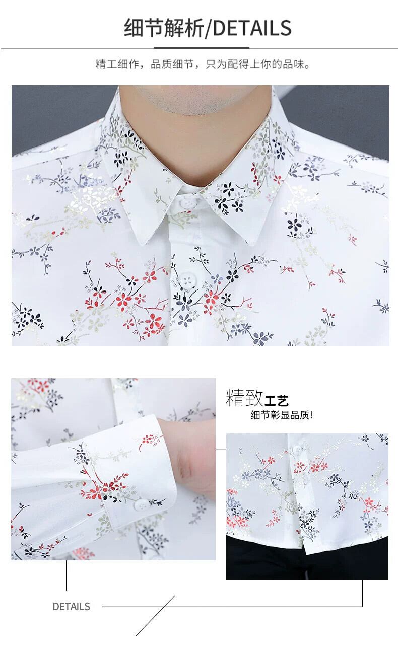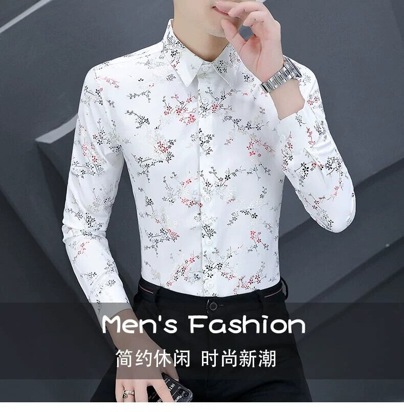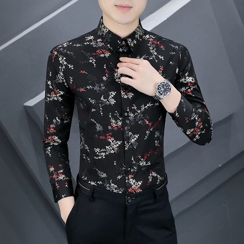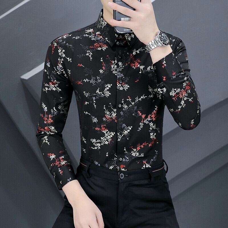 花柄シャツメンズ長袖ハイエンドアイロン不要ヘアスタイリストハンサムシャツメンズトレンディスリム春秋シャツ ロング スプリング 春物 オータム 秋物 undao5653626010