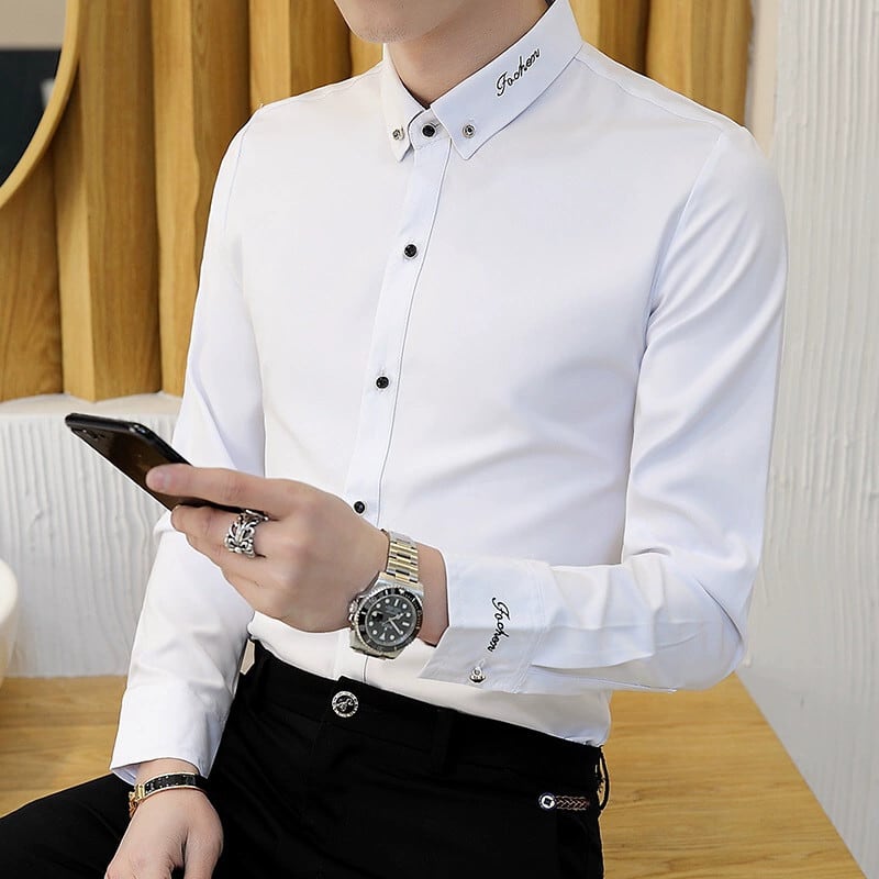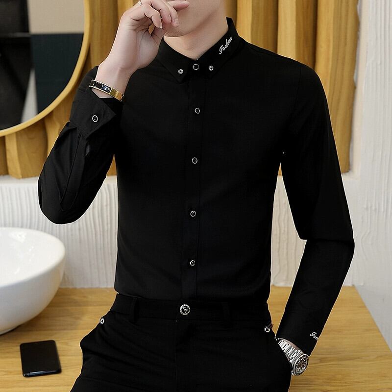 春の白シャツメンズ長袖スリムスーツメンズシャツビジネスレベルの弾性黒インナー服 ロング ホワイト ブラック エラスティック 伸縮 スプリング 春物 undao57030365212