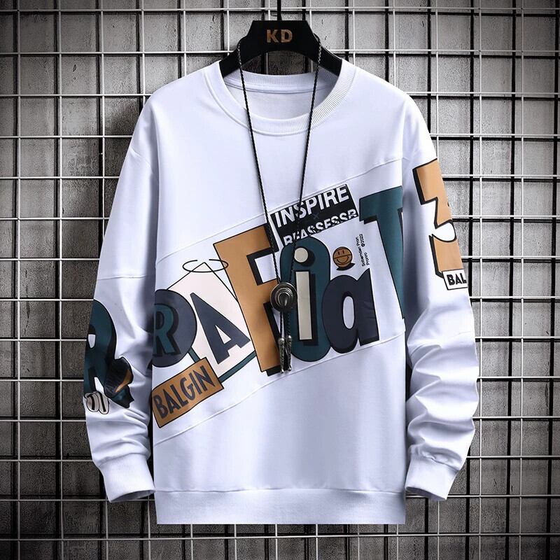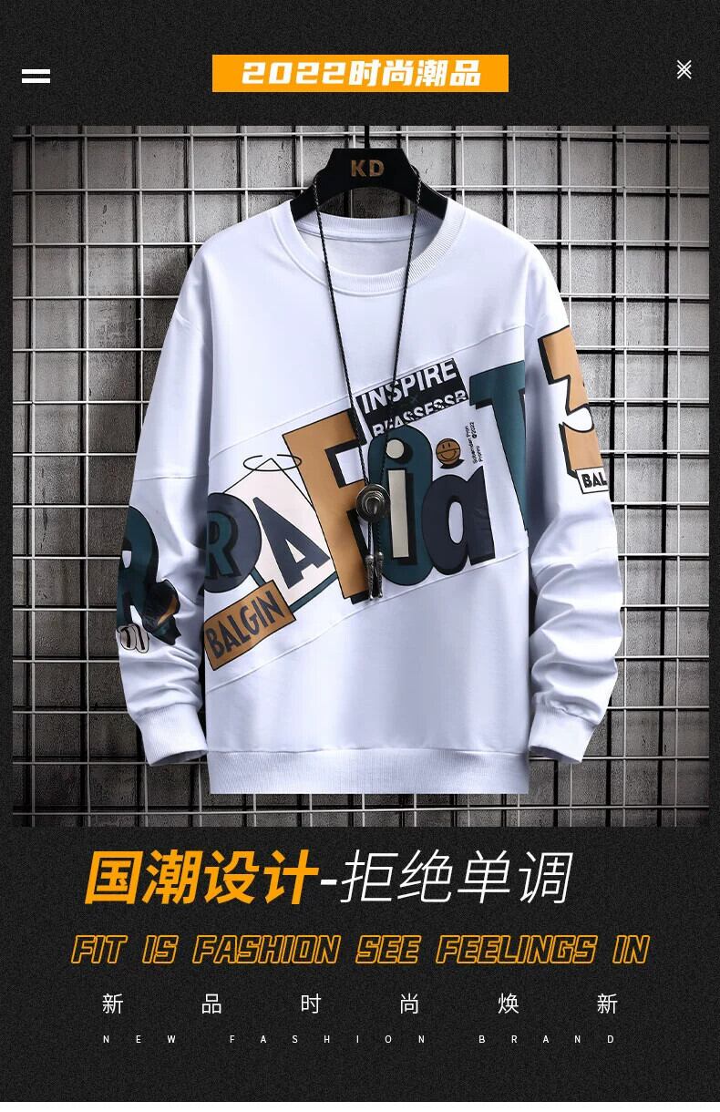 潮ブランドラウンドネックセーターメンズ春と秋のトレンドレタープリント長袖 Tシャツトップルーズ無地カジュアルジャケット ロング スプリング 春物 オータム 秋物 Oネック ソリッドカラー undao71447276165