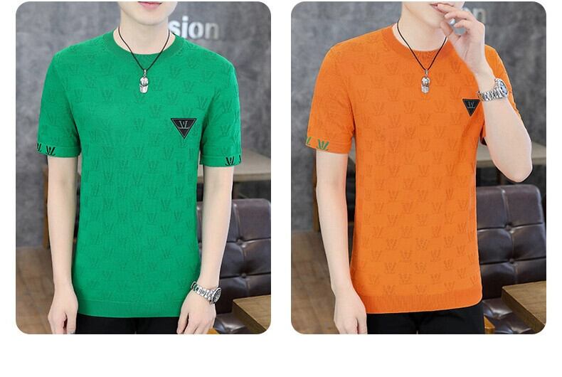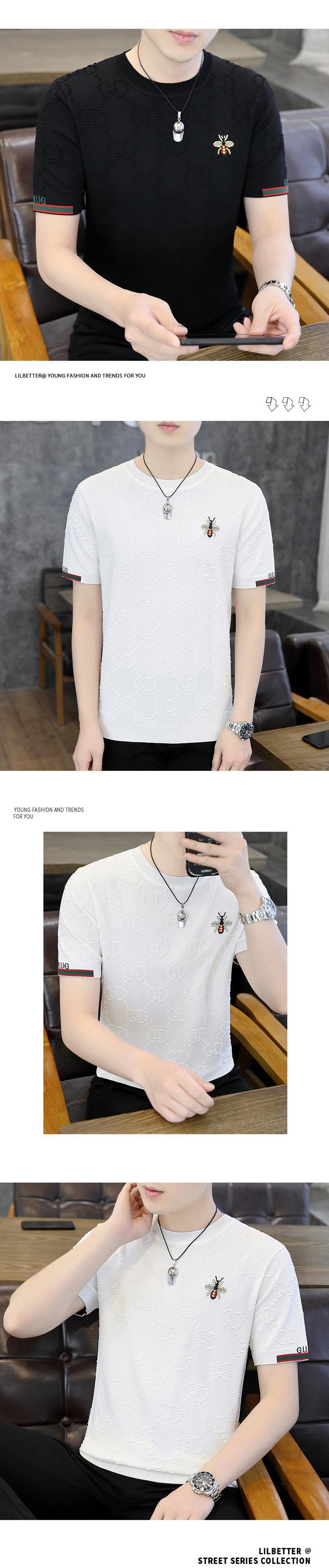 夏薄いアイスシルク半袖 t シャツメンズトレンディなブランド 3D 刺繍ニット半袖夏トップスハイエンドメンズ t シャツ サマー 夏物 Tシャツ undao72243957432