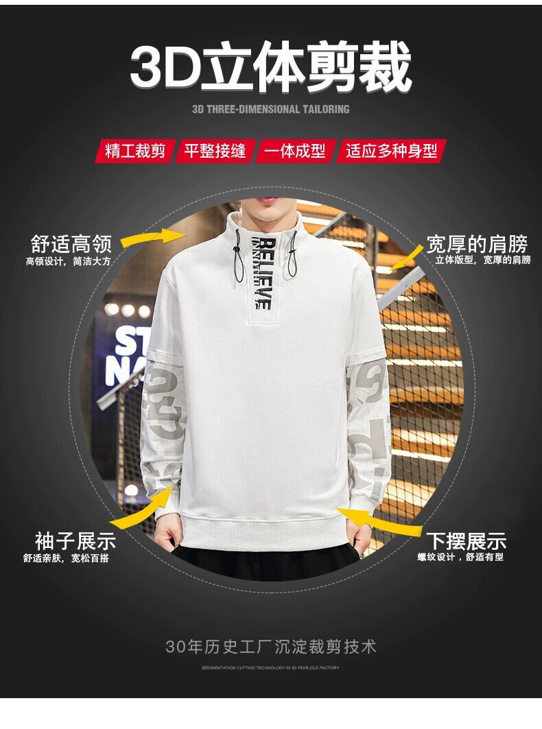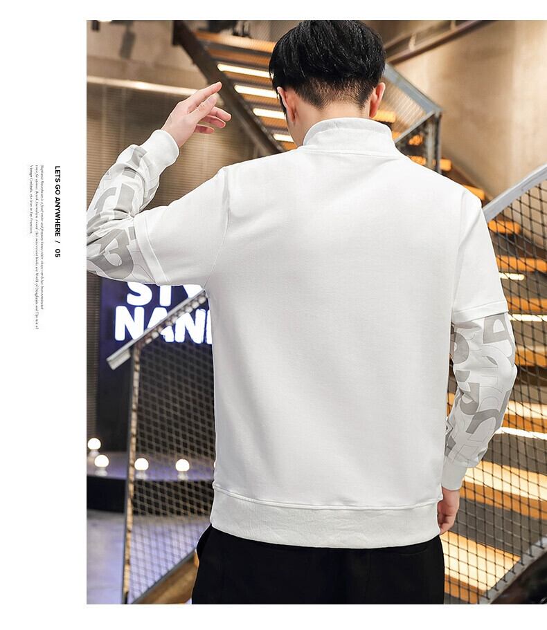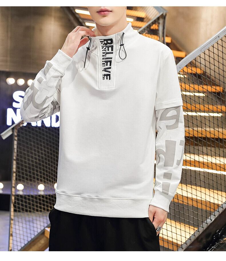 春と秋の白ハイネックボトムシャツメンズトレンディカジュアル春トップ潮ブランドルーズフェイクツーピース長袖Tシャツ ロング ホワイト スプリング 春物 オータム 秋物 undao72342500347
