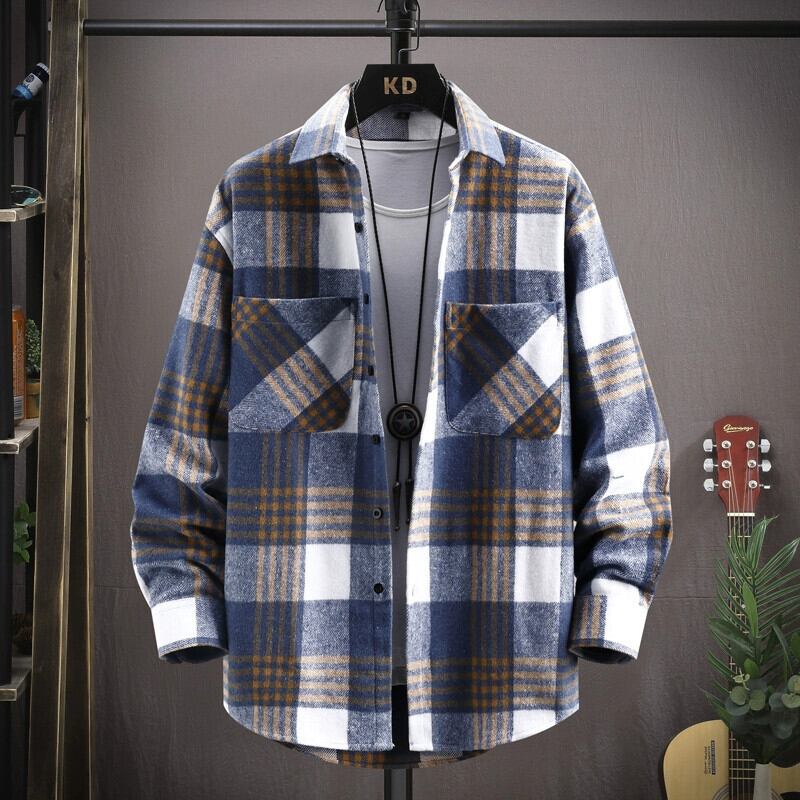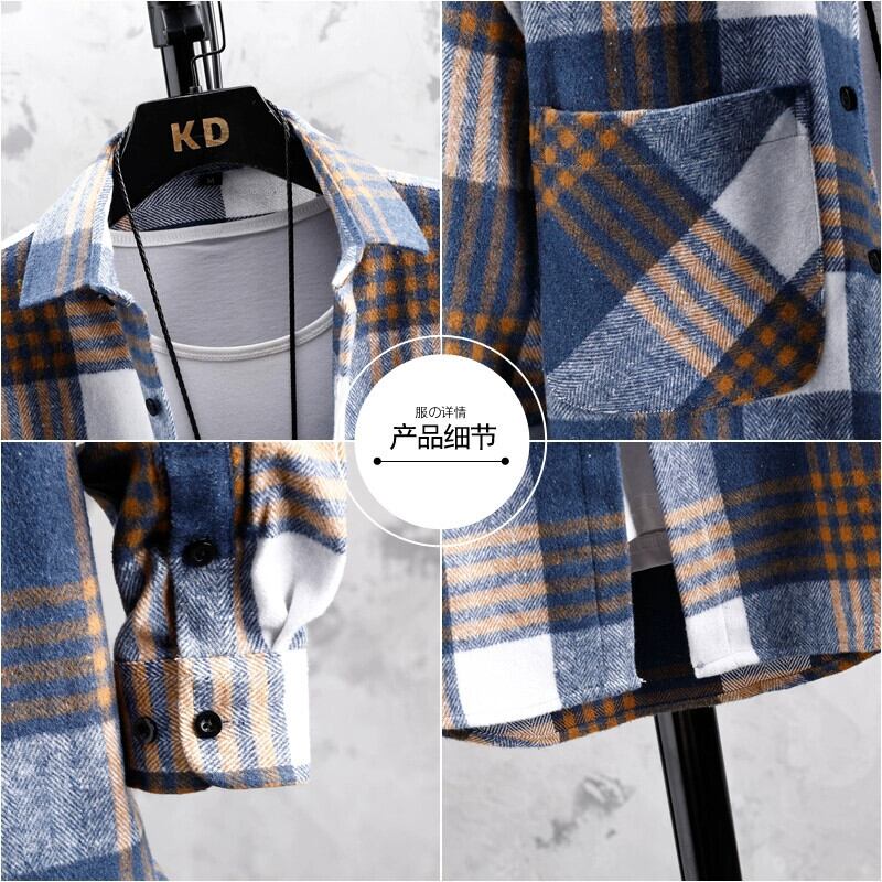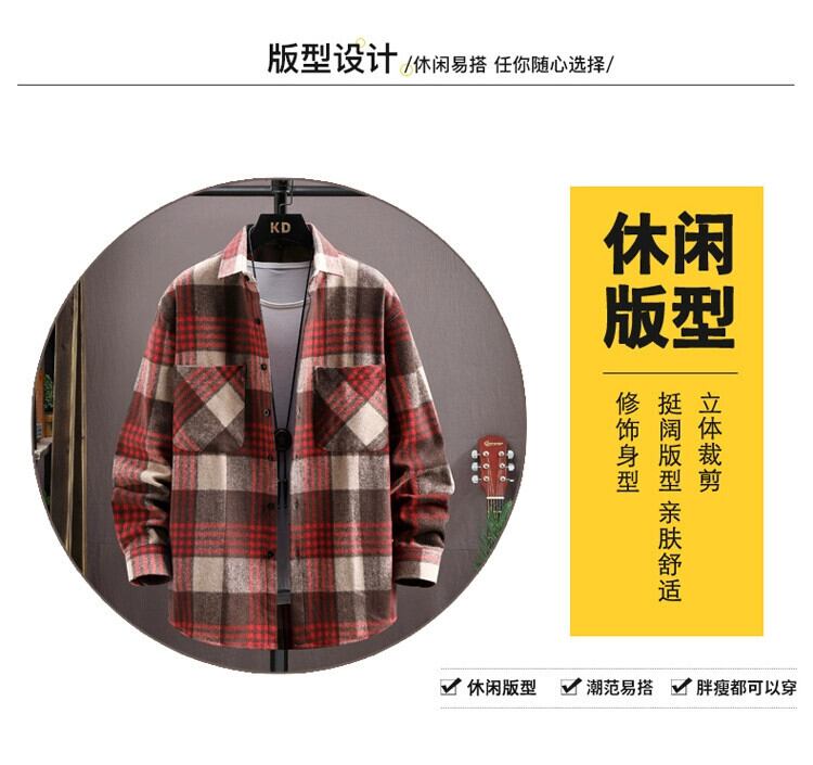 ユース起毛厚く暖かいチェック柄シャツメンズツーリング長袖トレンディブランドルーズ学生シャツカジュアルジャケット ロング undao90443182448