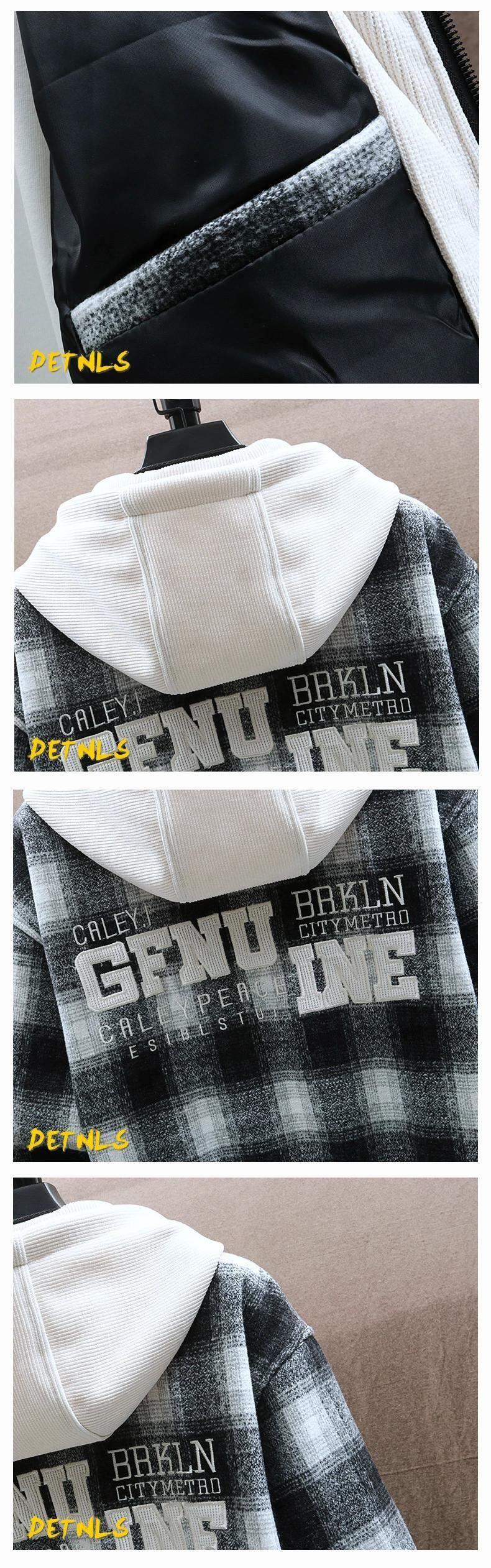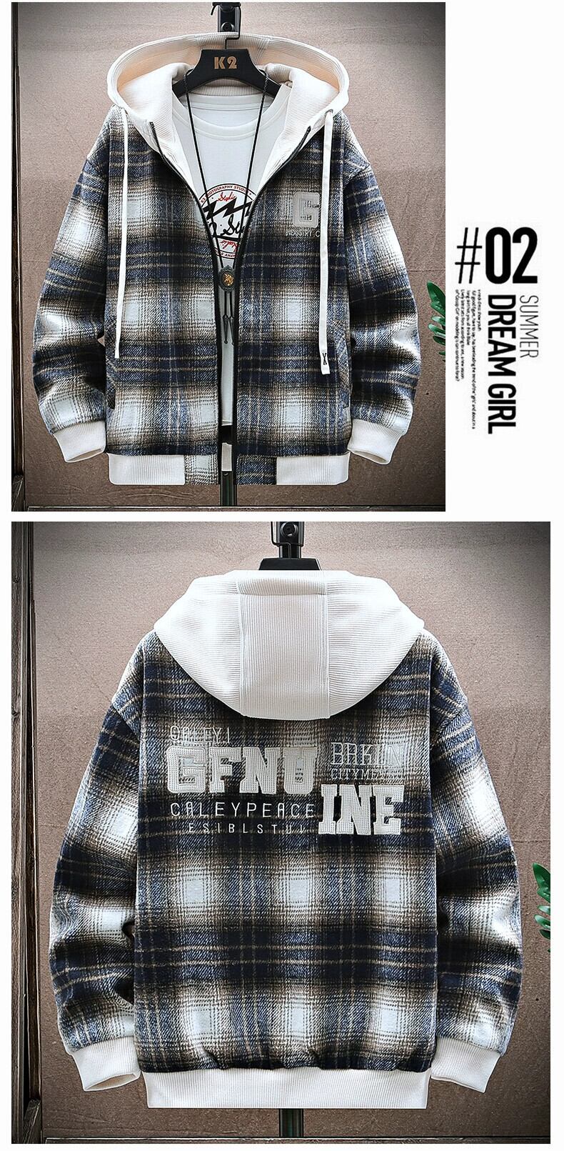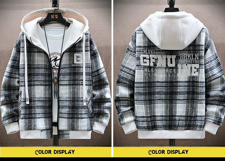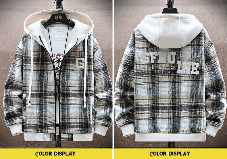 チェック柄ウールジャケットメンズ春と秋のトレンディなルーズフード付きジャケットメンズトレンディな厚みのあるガウン男性 スプリング 春物 オータム 秋物 undao65774918910
