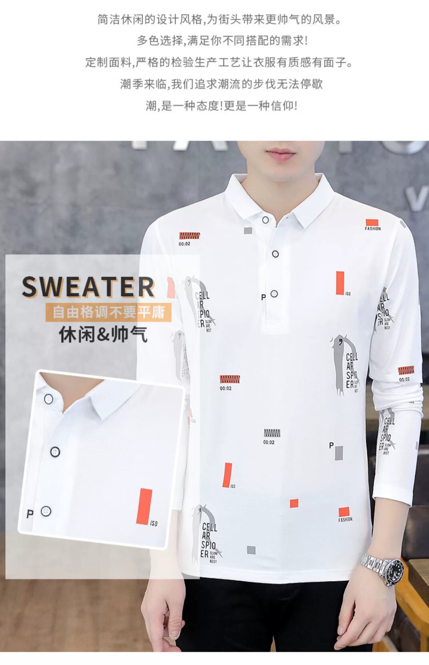 長袖Tシャツメンズ春イントレンドポロシャツ潮ブランドラペルトップ服ボトリングシャツ緩い春服 ロング スプリング 春物 undao4165793328