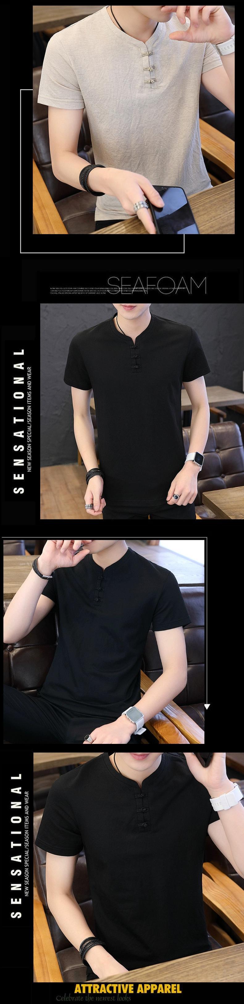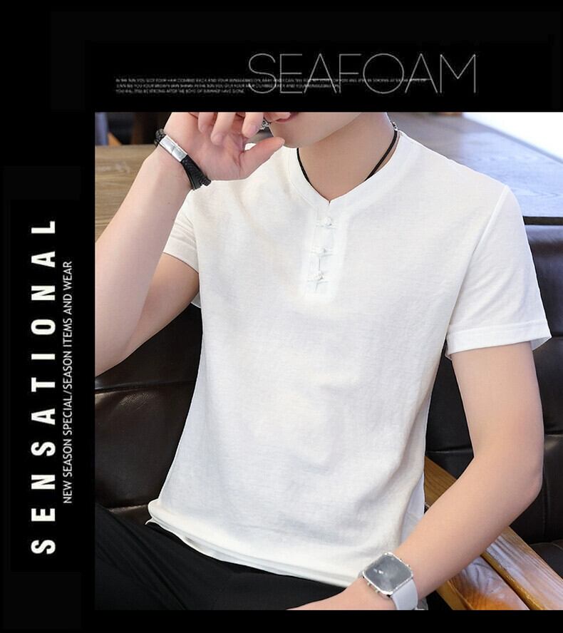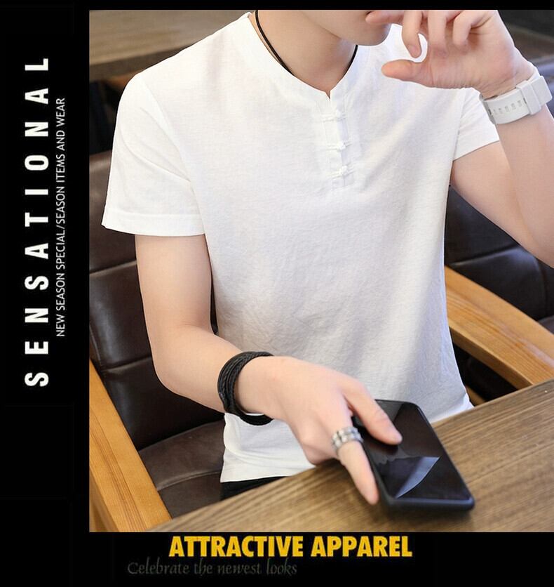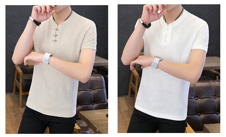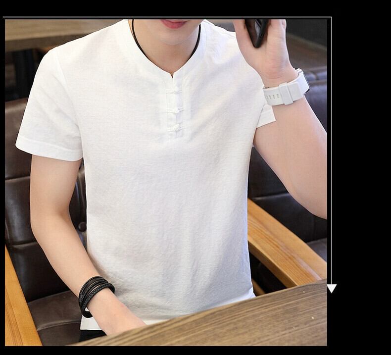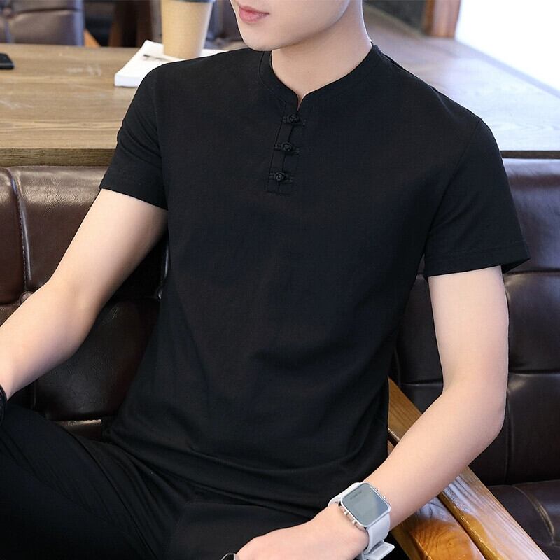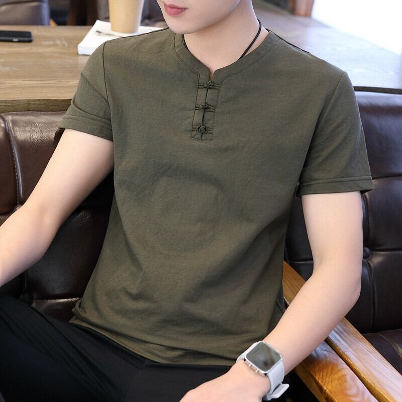 メンズ中国風のリネン半袖 Tシャツ唐スーツレトロ若者半袖底服トレンディなメンズコットンリネン Tシャツ undao78424231300