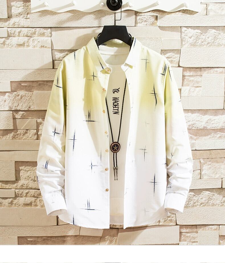 春夏長袖カジュアルシャツメンズトレンドブランドハンサムグラデーションプリントインチシャツ人気アインスタイル薄手コート ロング スプリング 春物 サマー 夏物 undao55475797840