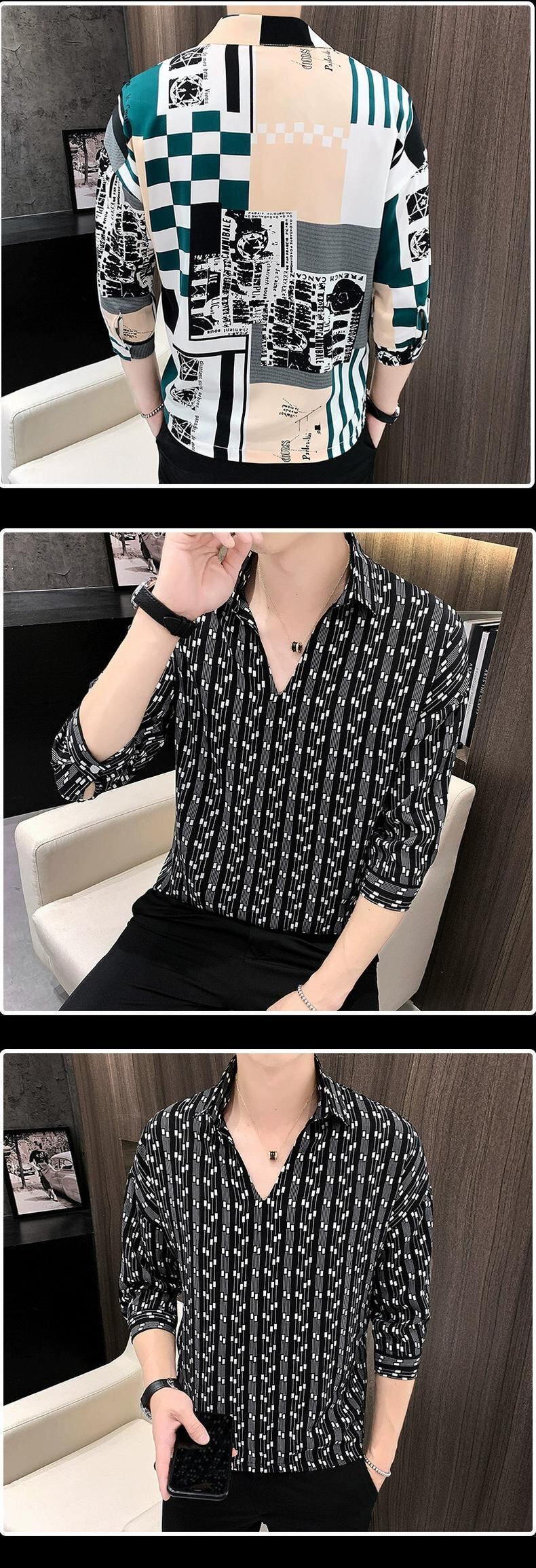 夏のメンズアイスシルク半袖Tシャツ潮ブランド服トレンドルーズ七分袖カジュアルTシャツVネックメンズ五分袖 サマー 夏物 undao52535127638