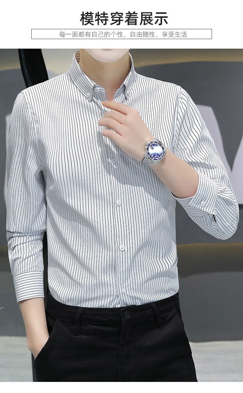 メンズ長袖シャツメンズ高級ストライプカジュアルシャツノンアイロン英国ヤッピーメンズ高級薄地春 ロング スプリング 春物 undao74535568629