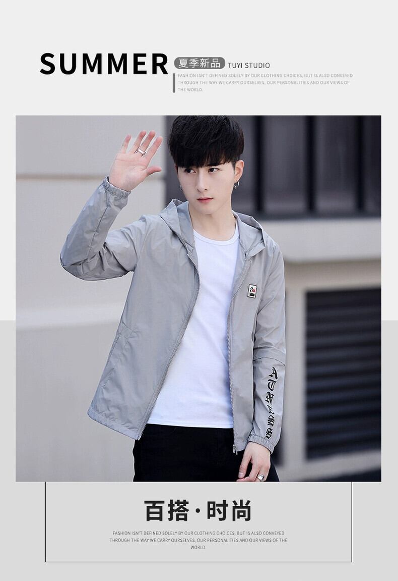 2023 夏の新スタイルトレンディカジュアルハンサムジャケットメンズコート学生ルーズ薄部日焼け防止服男性 サマー 夏物 undao87708010428