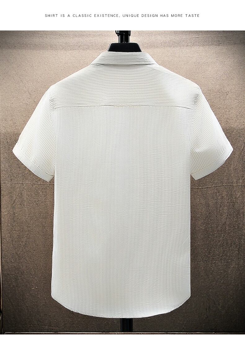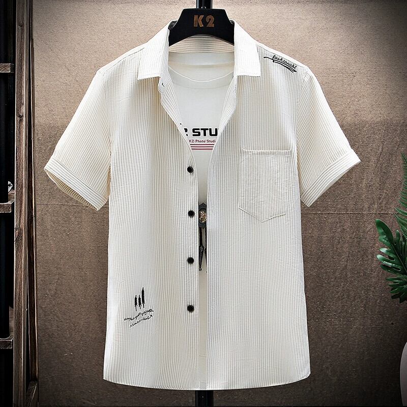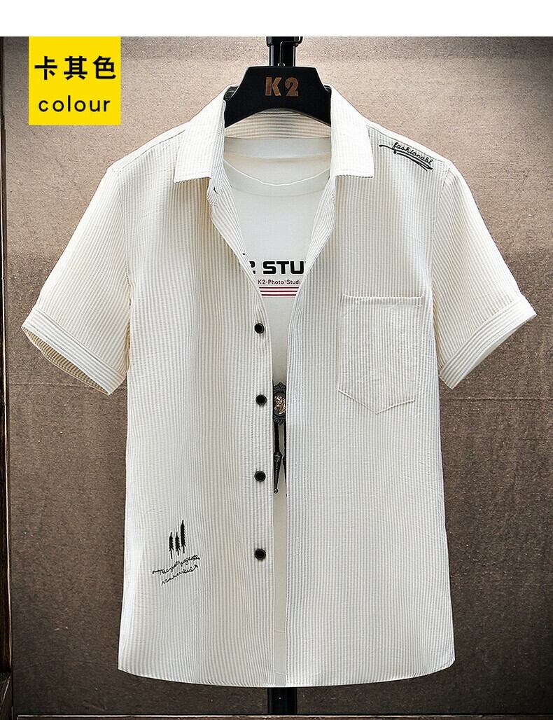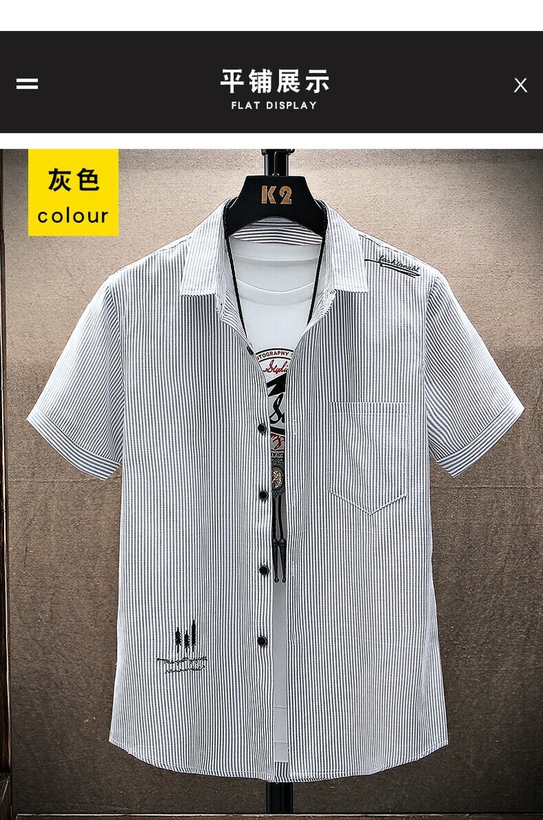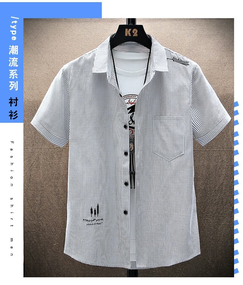 2023 新夏バージョントレンディな若者のストライプカジュアルシャツメンズトップス服ハンサム半袖シャツ男性 サマー 夏物 undao21805837542