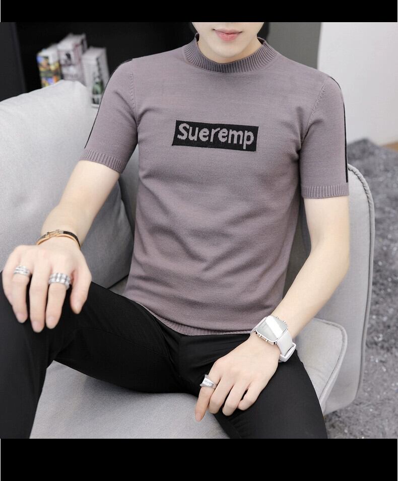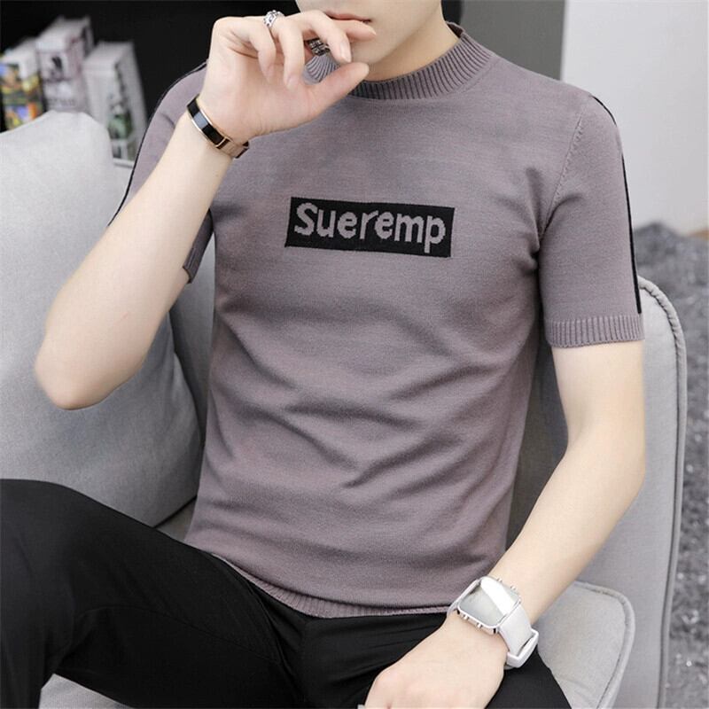 2023春秋の新作メンズハーフハイカラーニット半袖Tシャツスタイルトレンディな半袖セーターボトリングシャツ スプリング 春物 オータム 秋物 undao26476405154