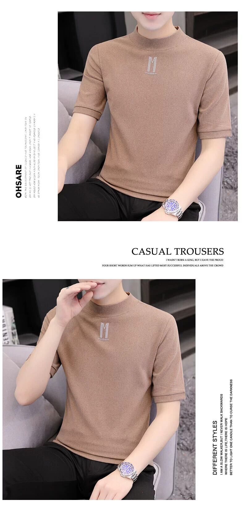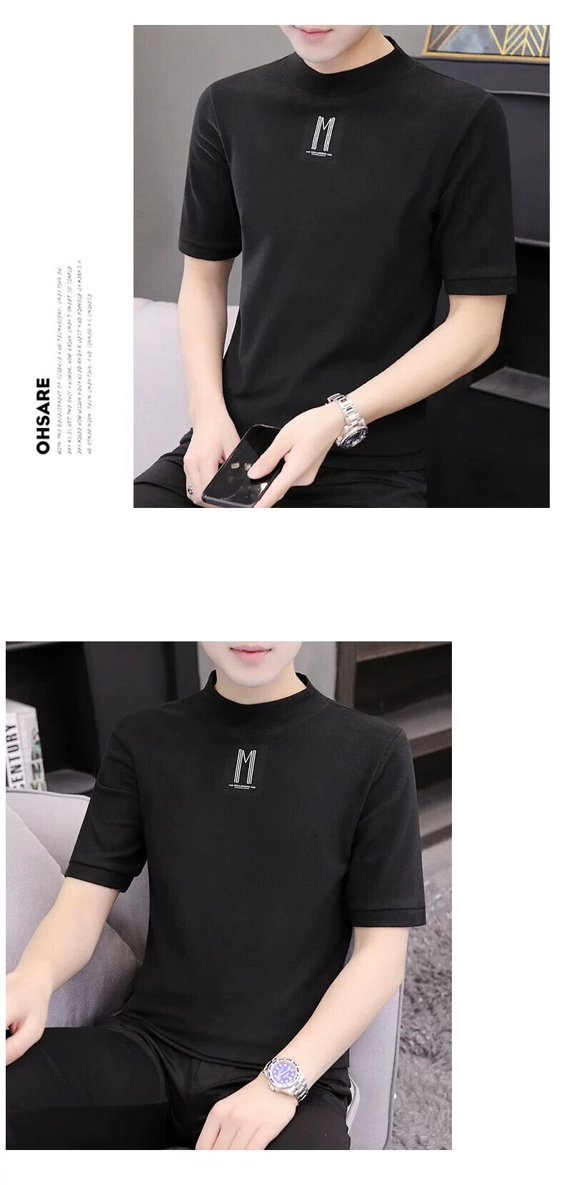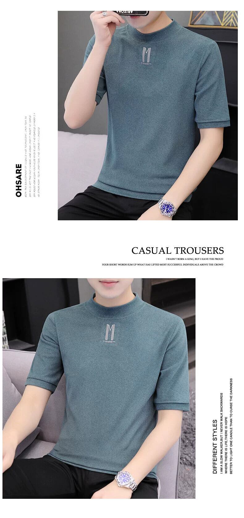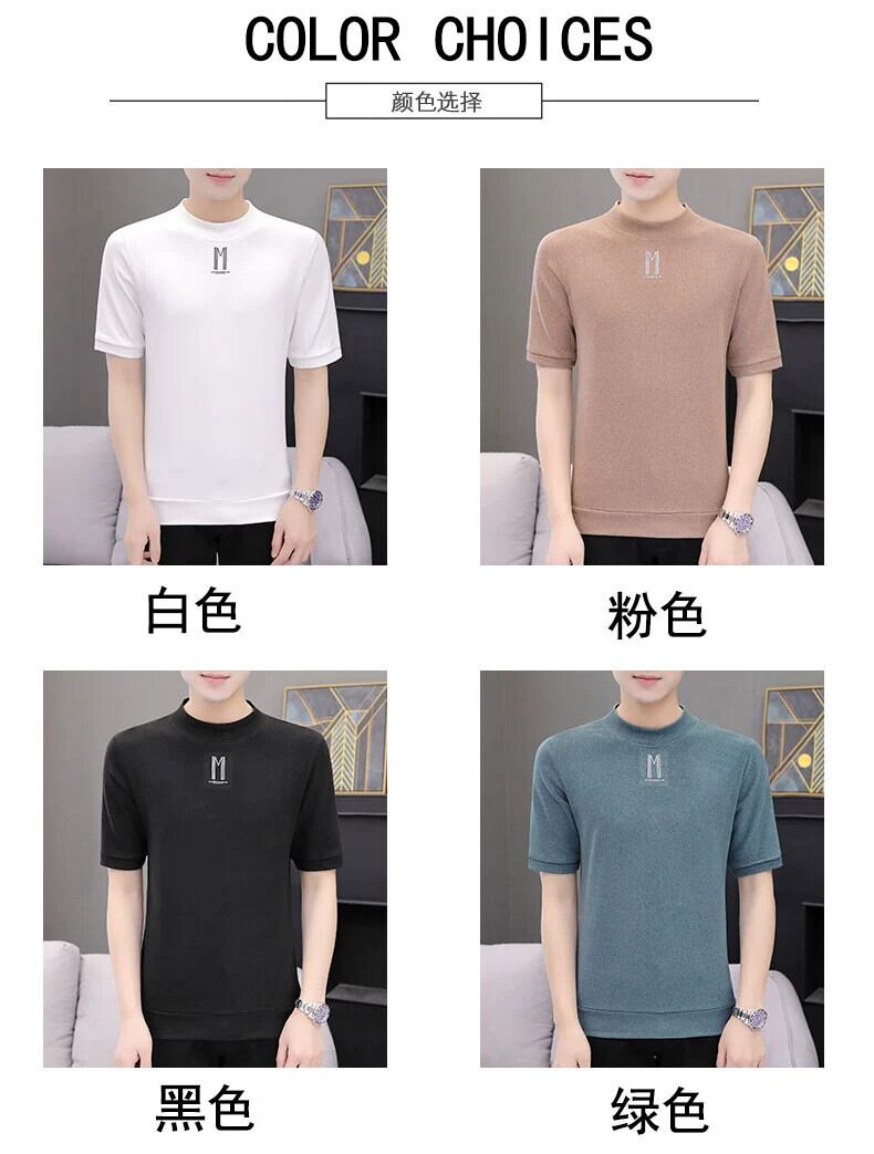 半袖Tシャツ メンズ 春夏新作 オールマッチ ハーフハイカラー ボトリングシャツ 半袖セーター ミッドネック Tシャツ 潮 スプリング 春物 サマー 夏物 undao35409662760