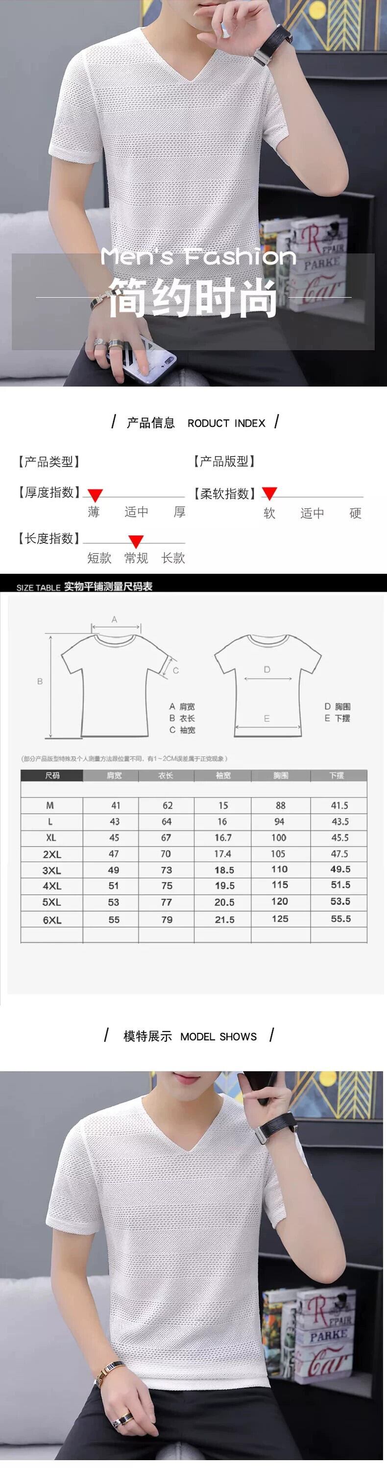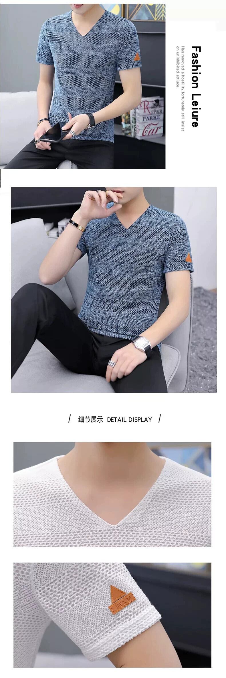 2023 夏の新アイスシルク中空メンズ半袖 Tシャツニットメッシュ V ネック半袖小さいシャツ薄い Tシャツ潮 サマー 夏物 Vネック undao61558669767