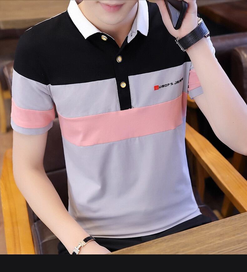 アイスシルクコットン半袖Tシャツメンズ夏トレンドラペルTシャツ襟ポロシャツ半袖夏服 サマー 夏物 undao49614291397