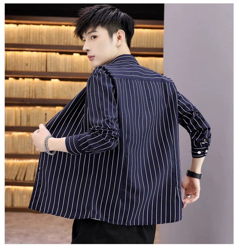 2023 新しいメンズ長袖ストライプシャツメンズハンサムライトおなじみのスタイル若者男の子春と秋のシャツ ロング スプリング 春物 オータム 秋物 undao86662886406