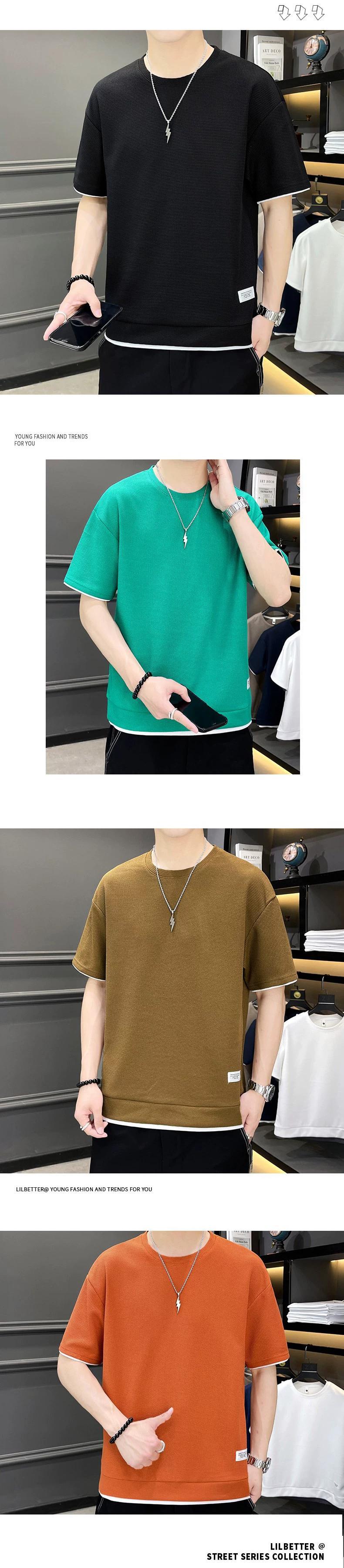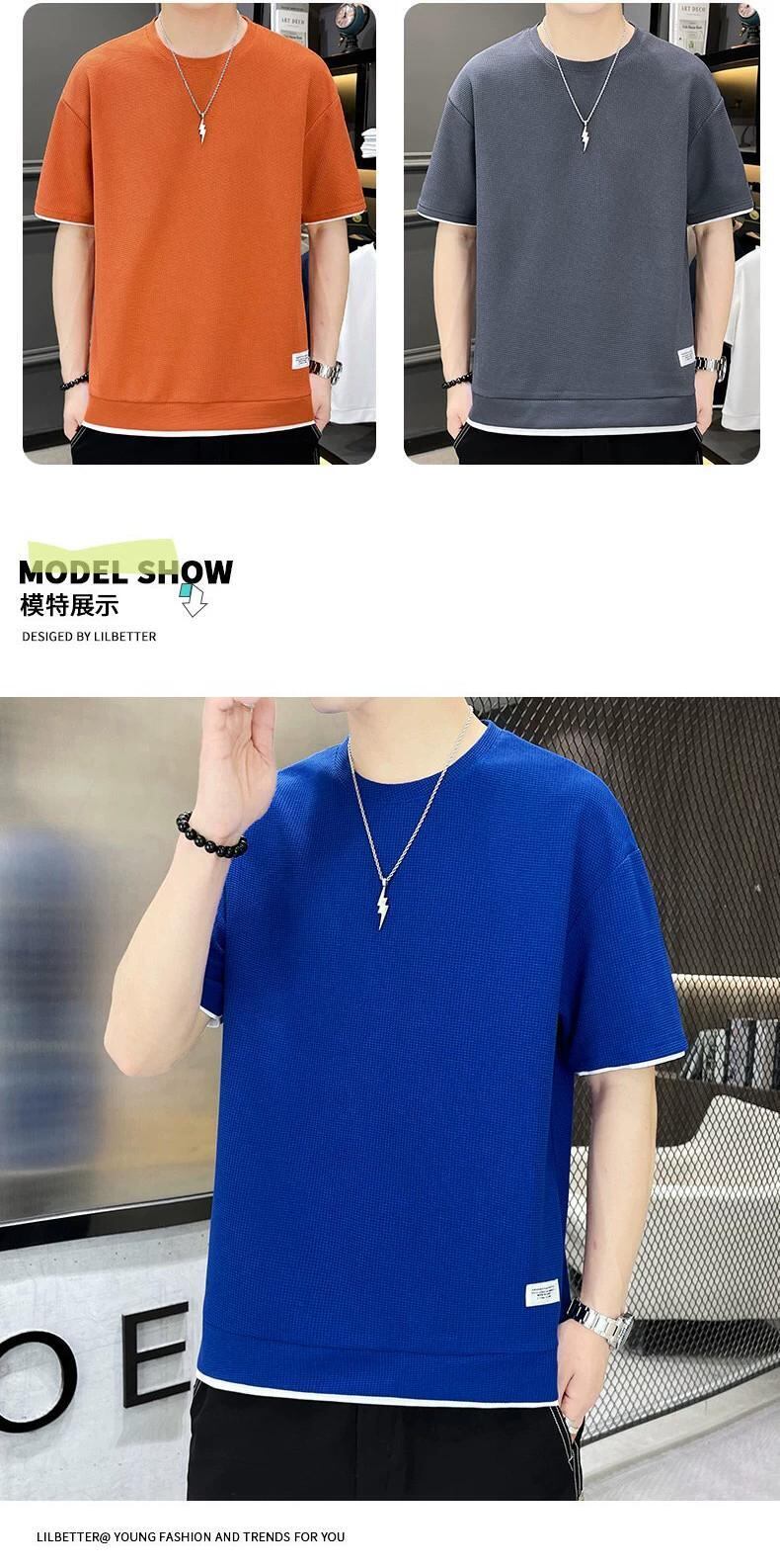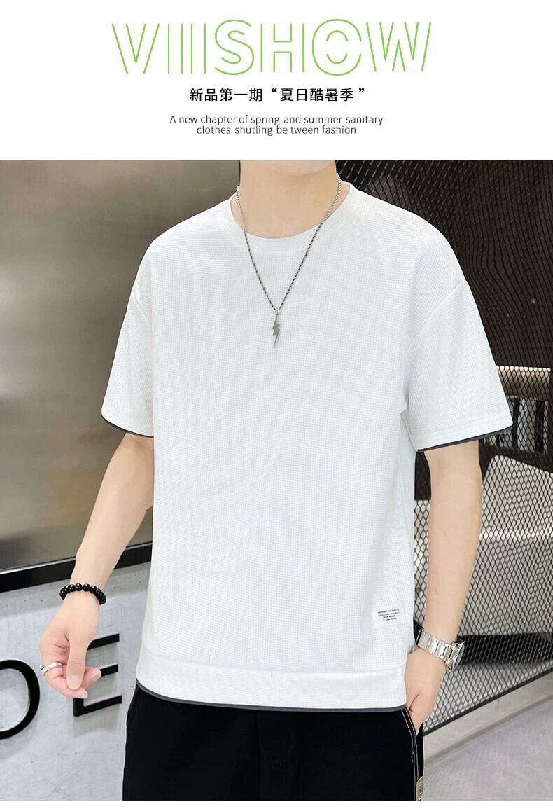 半袖Tシャツ メンズ 夏 ラウンドネック 半袖 トップス ユース ワッフル 無地 アイスシルク Tシャツ グレー メンズ スリムフィット サマー 夏物 Oネック ソリッドカラー undao17034691283