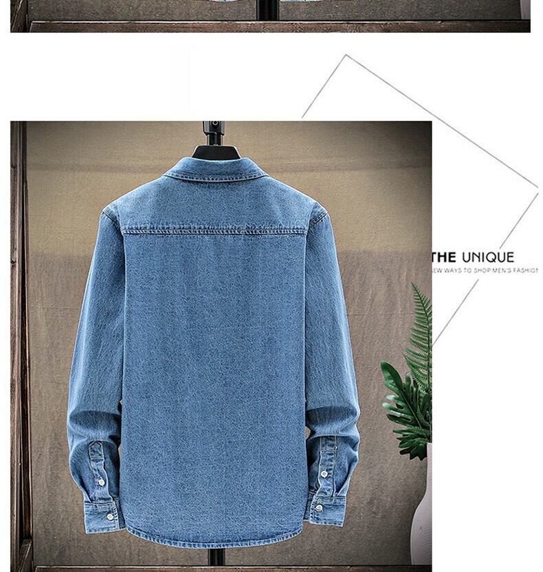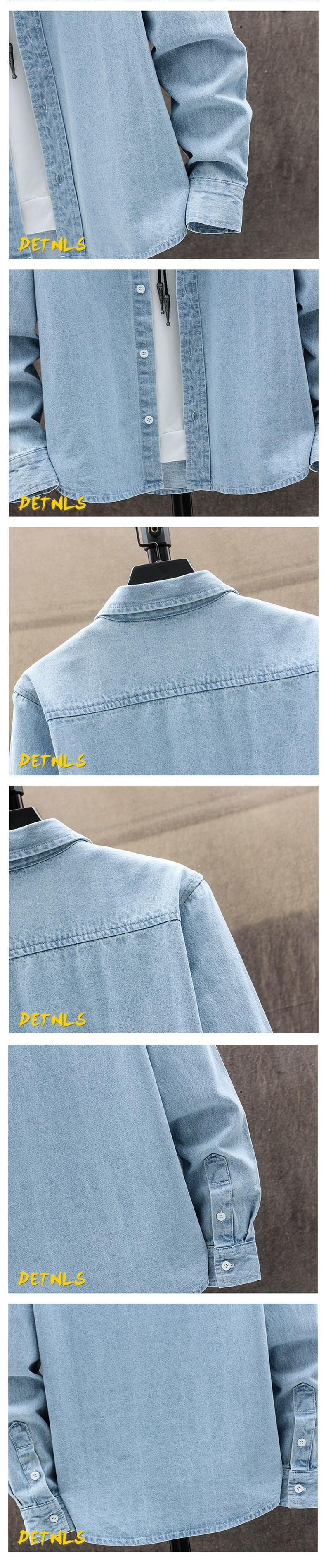 2023 新しい長袖シャツ綿トップボトシャツ薄いセクションオールマッチソリッドカラーラペルデニムジャケットジャケットメンズ ロング コットン undao77552293472