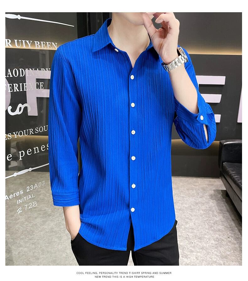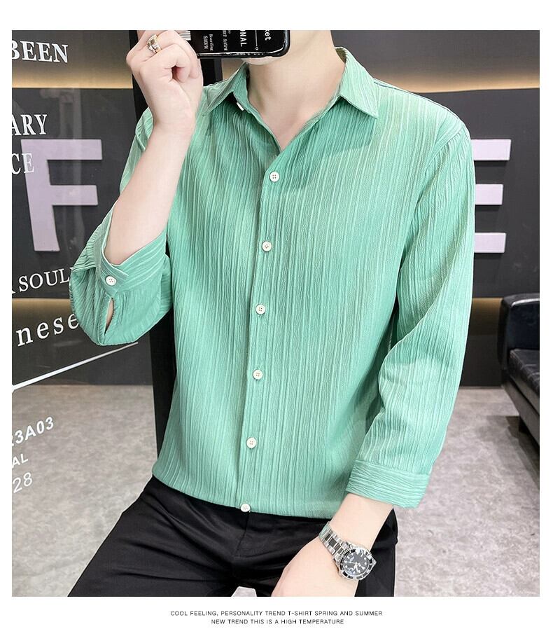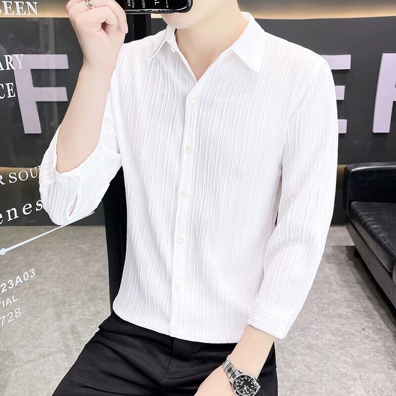 春と秋の薄手のシャツメンズ七分袖トレンディなルーズシャツエンドスタイリストヘアスタイリストハンサムトップ八分袖 スプリング 春物 オータム 秋物 undao67349196133