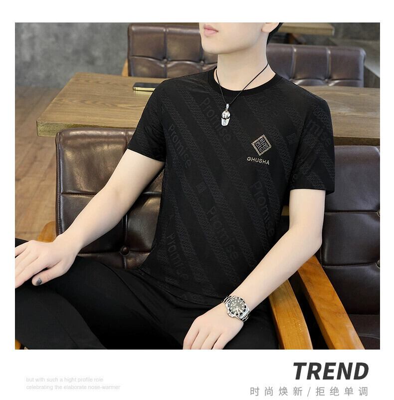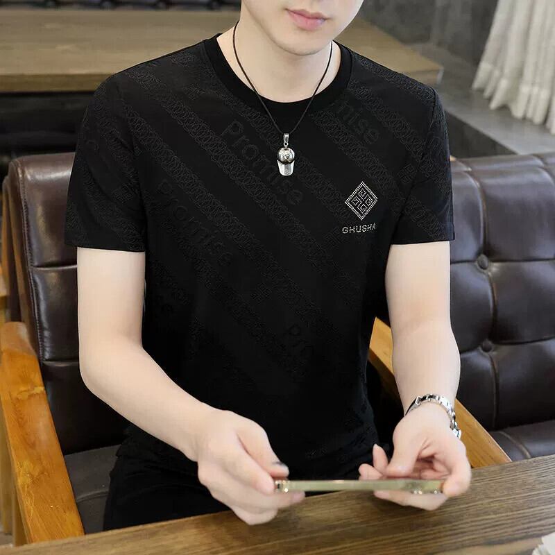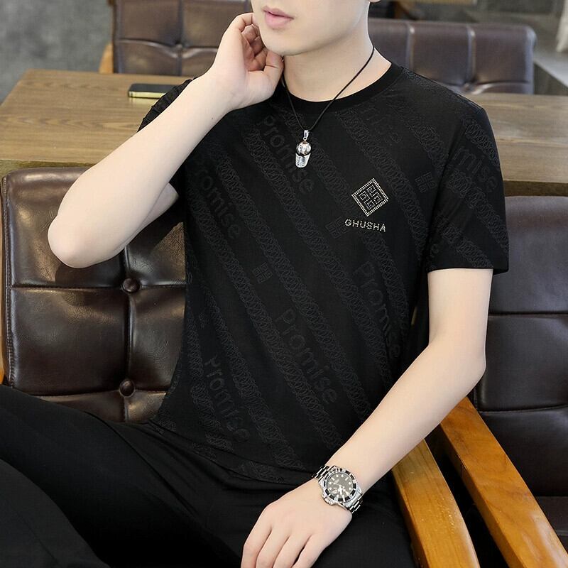 アイスシルク半袖 Tシャツメンズ夏のハイエンドダイヤモンドマルベリーシルク薄い Tシャツトレンディなオールマッチ半袖トップ服 サマー 夏物 undao4438044938