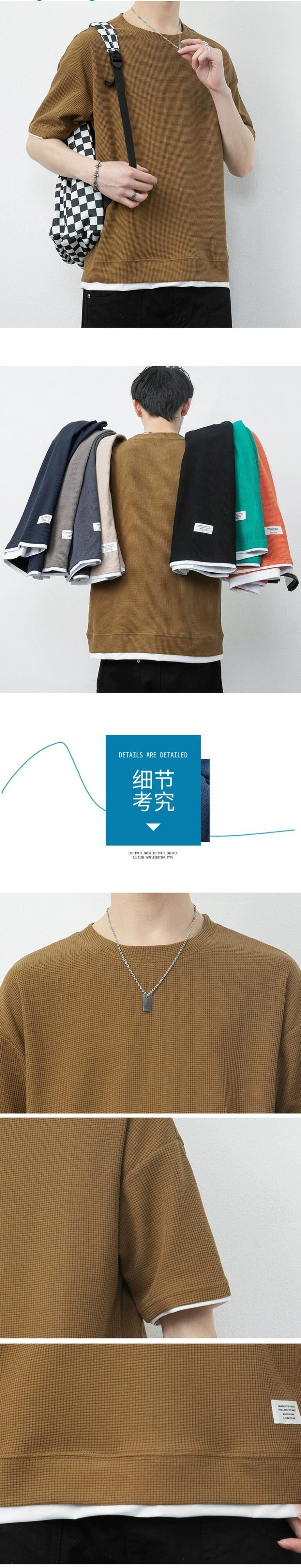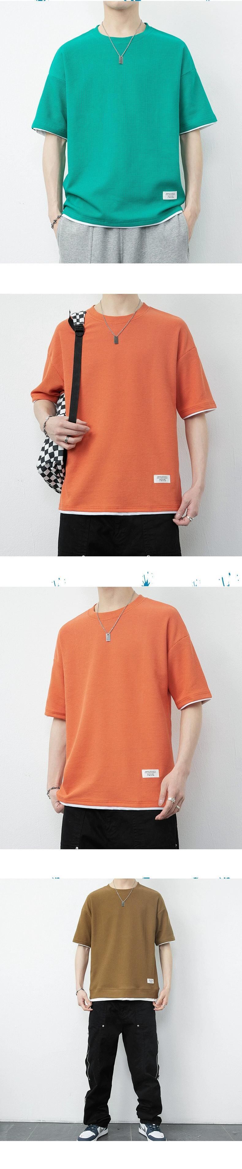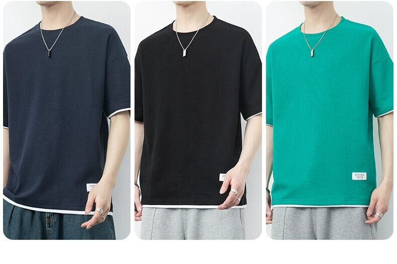 ヘビーウェイトワッフル半袖 tシャツメンズ潮ブランド夏薄部半袖ボーイズ tシャツアイスシルクカジュアルスーツ服 サマー 夏物 undao49788378336