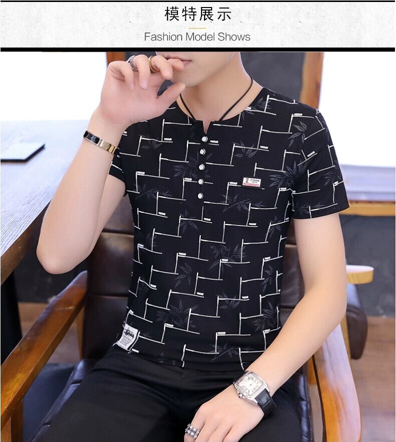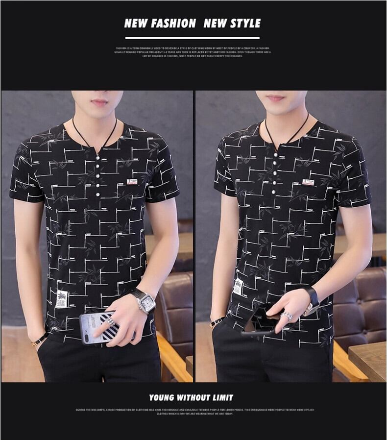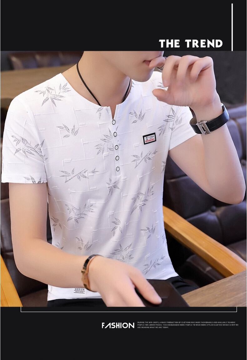 ピュアコットン Tシャツメンズ半袖ピンク 2023 新しい夏服トレンドプリントコットン半袖 V ネック Tシャツ サマー 夏物 Vネック undao5447517994