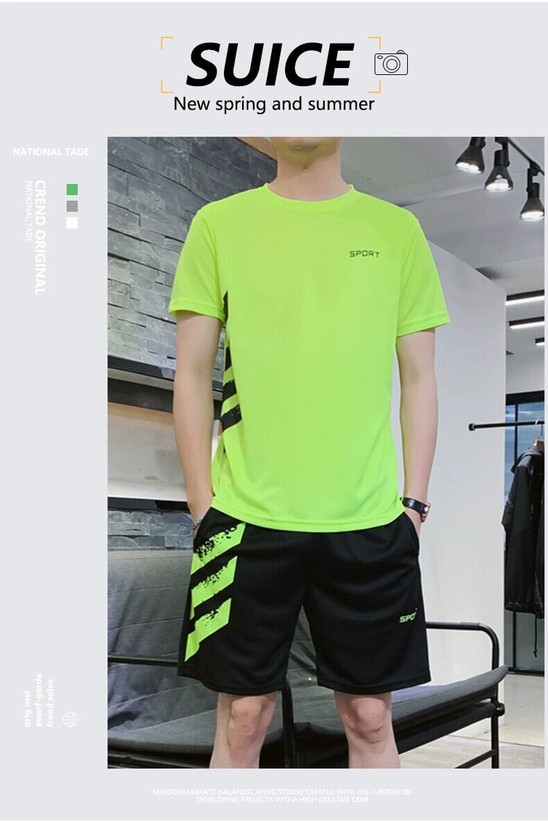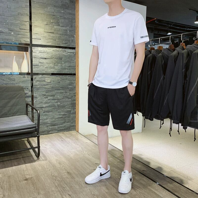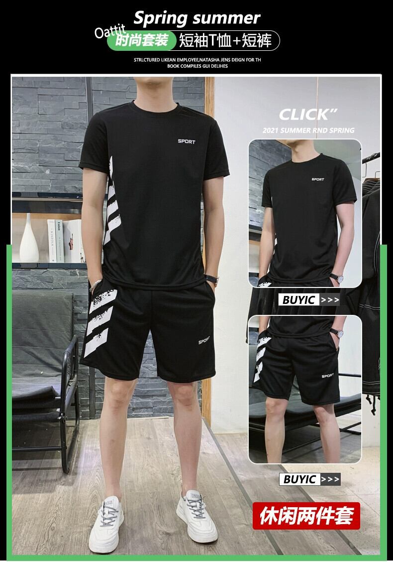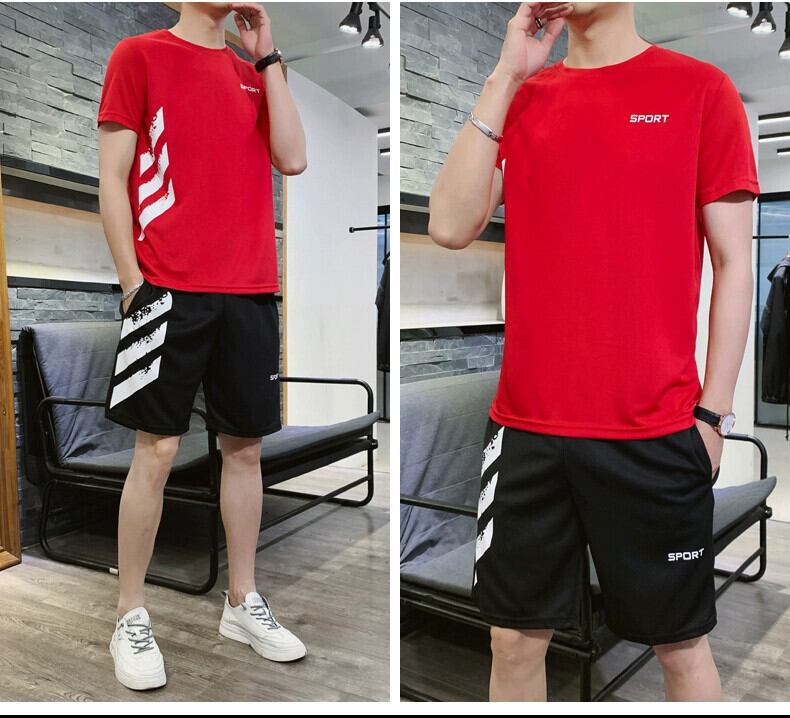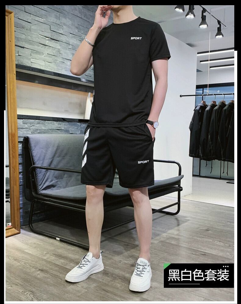 夏ランニングカジュアルスポーツスーツ男性ティーンエイジャーアイスシルク半袖ショーツ薄セクション学生速乾性フィットネス服 サマー 夏物 ブルマー undao99519029595