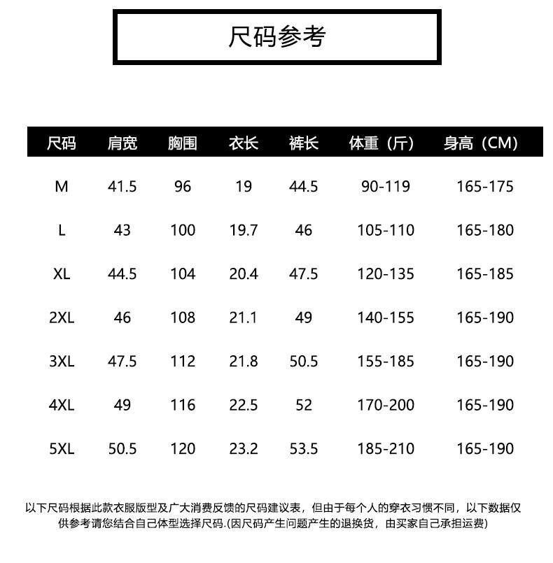 サイズ:M推奨90-110kg,L推奨105-120kg,XL推奨120-135kg,2XL推奨135-155kg,3XLは155~185キャティを推奨します,4XL推奨170~120斤,5XL推奨185-210kg
