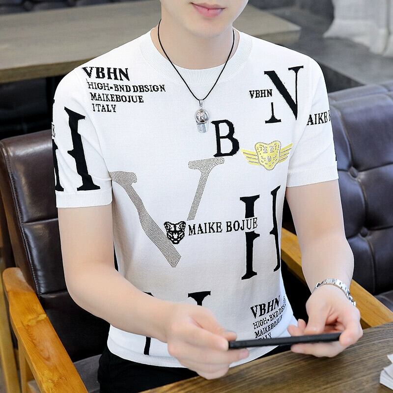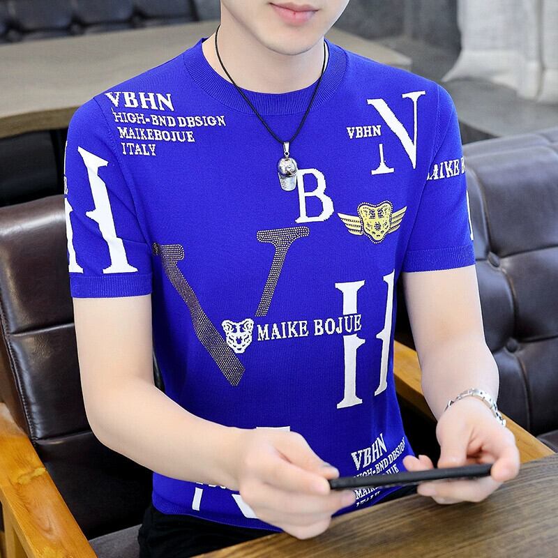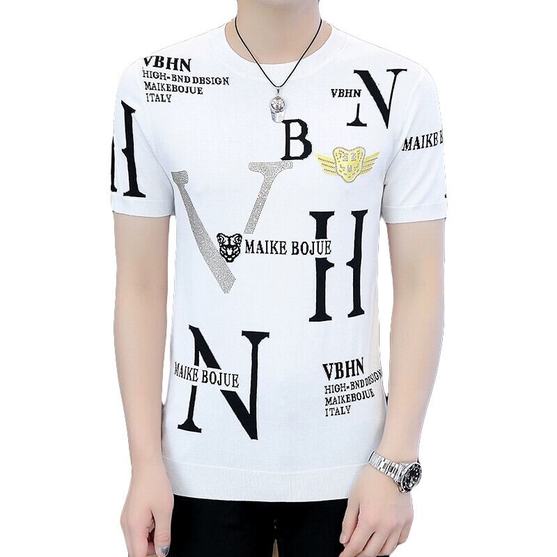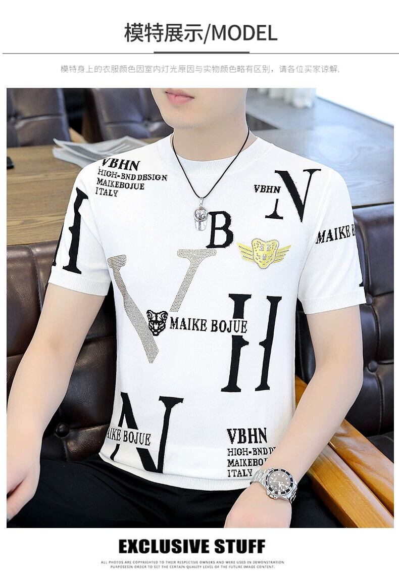 半袖メンズ Tシャツイントレンドアイスシルク半袖 2023 新しい夏ハンサムな氷感ソフトセーター Tシャツ サマー 夏物 undao65858896777