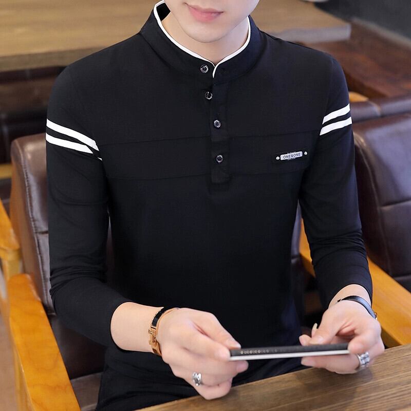 長袖Tシャツメンズポロシャツ春トップス服メンズカジュアルポロシャツスタンドアップカラーコットンユースシャツ ロング スプリング 春物 undao41889392885