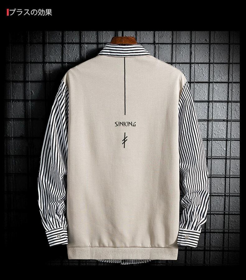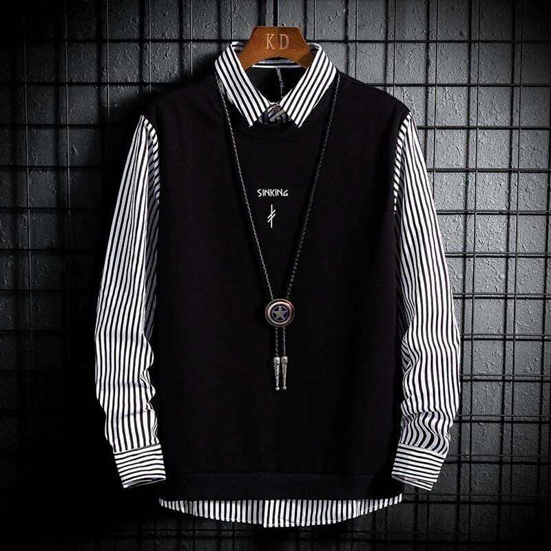 春と秋の長袖 Tシャツメンズトレンド潮ブランド偽ツーピースボトリングシャツ学生シャツ襟セーターメンズトップス ロング スプリング 春物 オータム 秋物 undao36309325991
