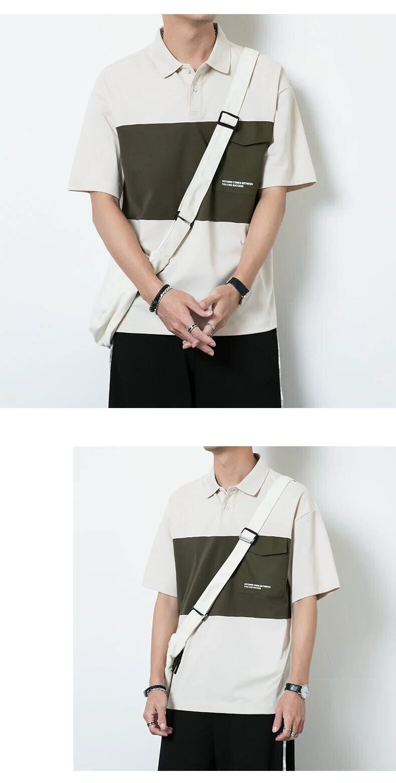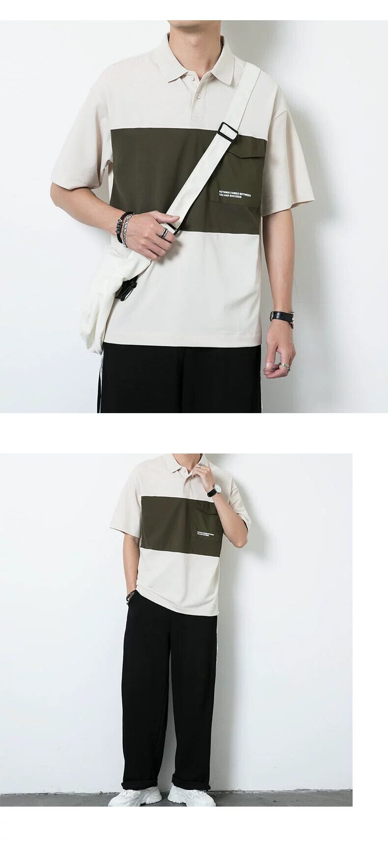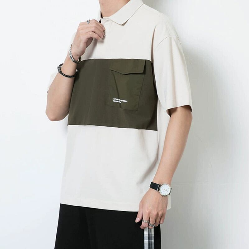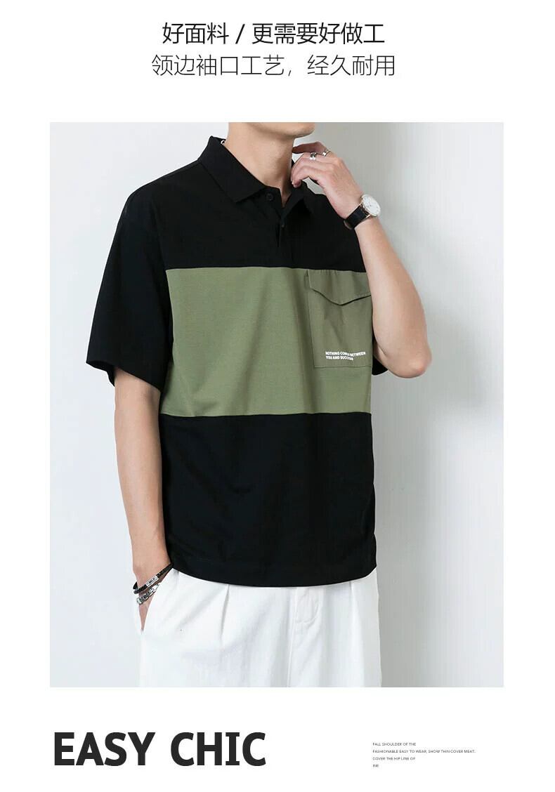 夏の新作ポロシャツメンズコントラストカラーラペル半袖Tシャツユースカジュアル個性ポケットボトシャツ潮 サマー 夏物 undao52750464261