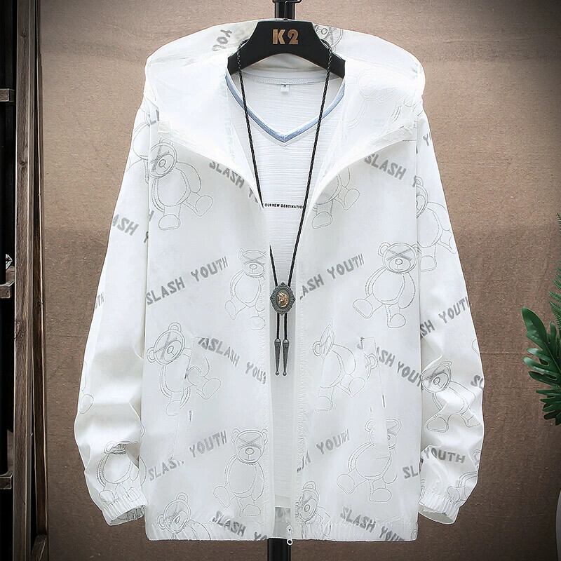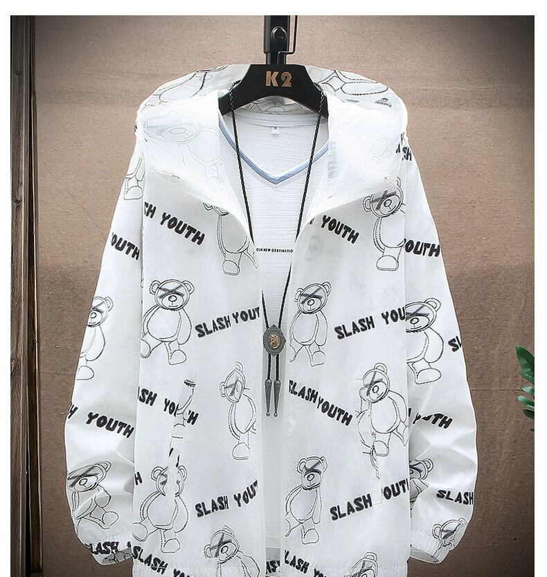 漫画クマメンズコートサマージャケット日焼け防止服薄部スポーツアウトドアアイスシルク日焼け防止服男性の釣り服 夏物 undao90099331803