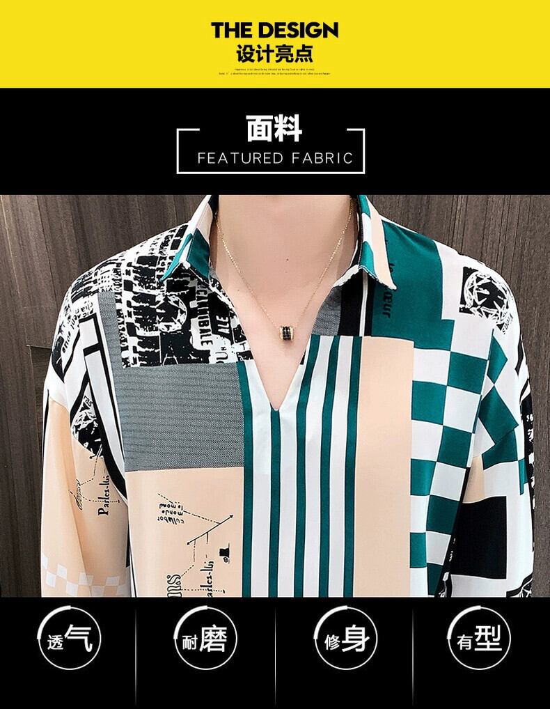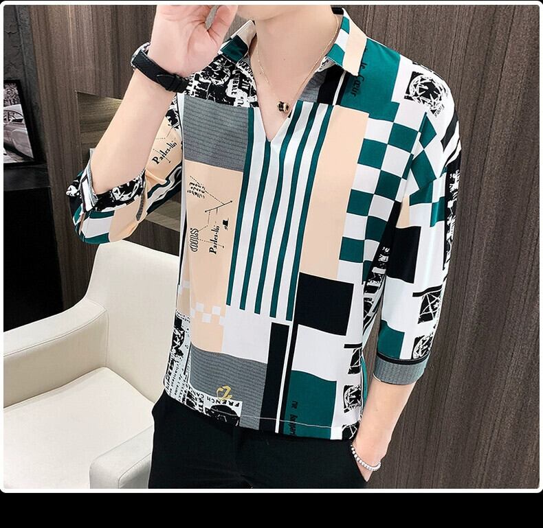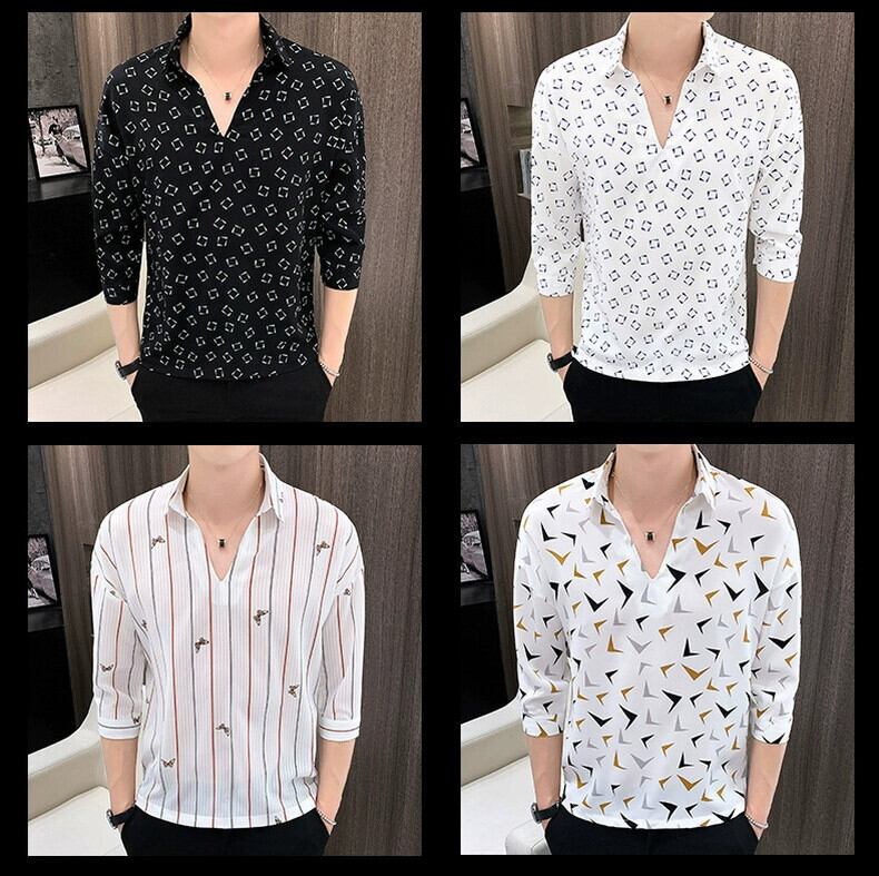 ハンサムメンズ半袖Tシャツ夏アイスシルク七分袖シャツメンズ新作高級Vネックポロシャツ サマー 夏物 undao68111229861