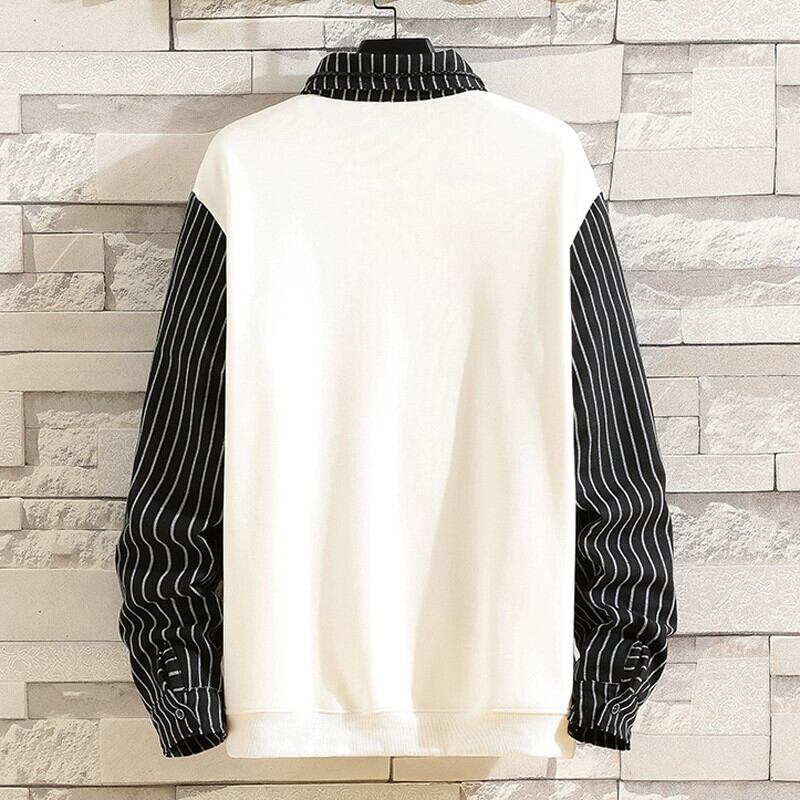 2023 春と秋の新作ストライプ偽ツーピースセーターメンズシャツ襟底シャツトレンドラペル偽襟トップ スプリング 春物 オータム 秋物 undao88970088062