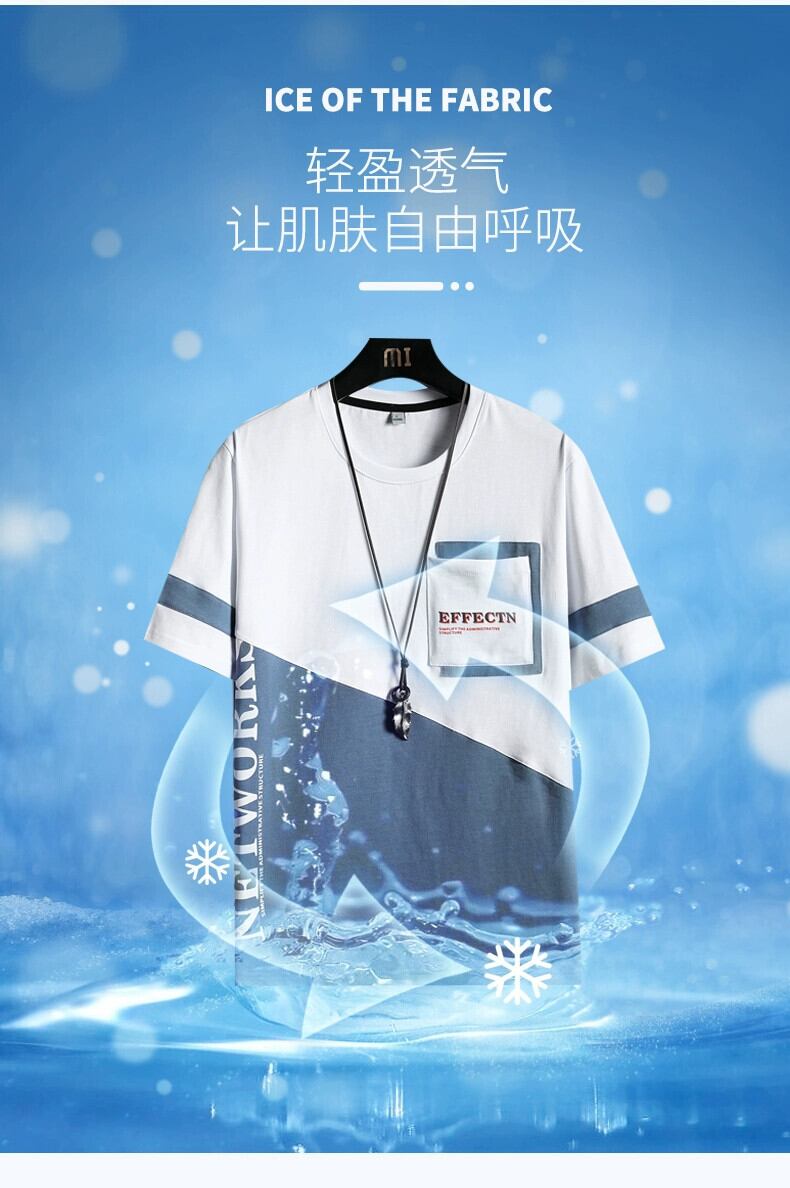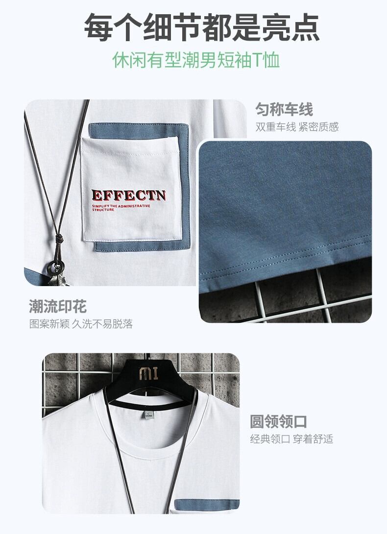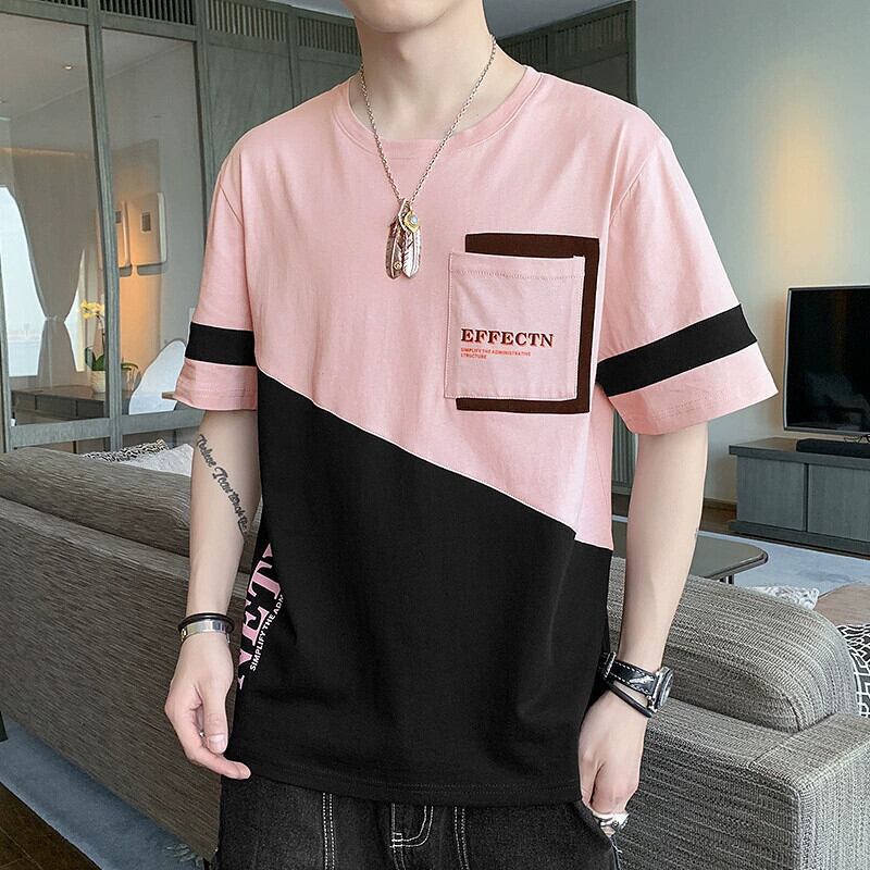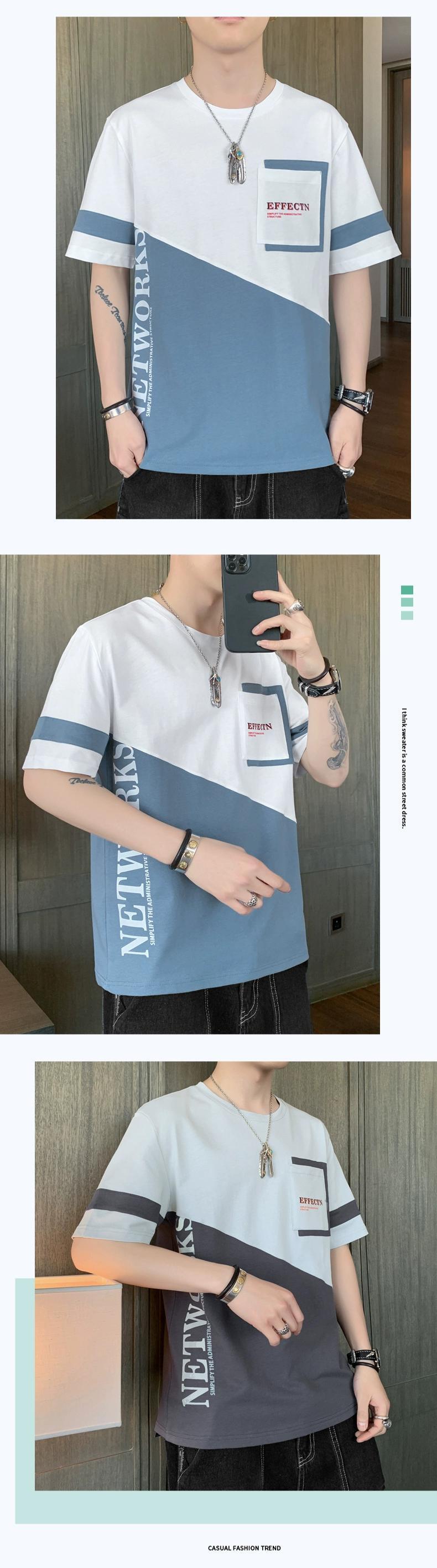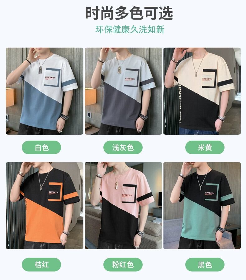 コットン半袖 Tシャツメンズ夏ルーズコットンスプライシングコントラストカラートップトレンド個性プリントカジュアル Tシャツ サマー 夏物 undao17180940569