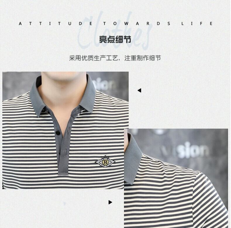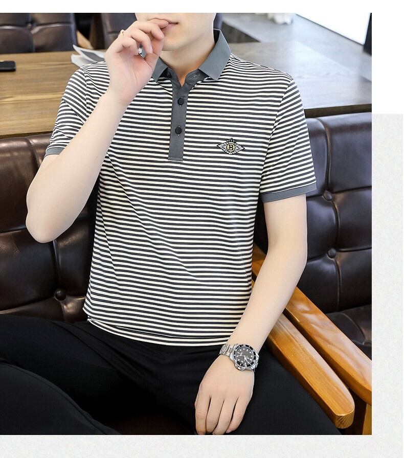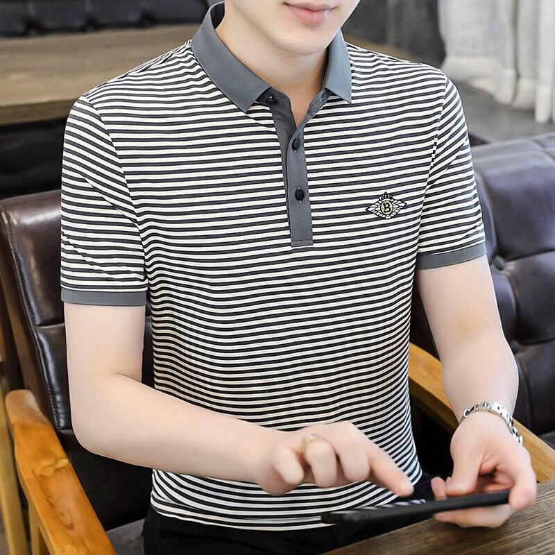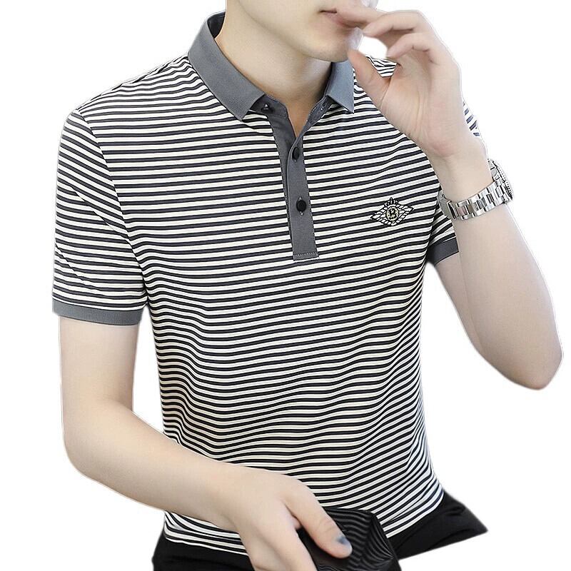 シャツ ストライプ 半袖 Tシャツ メンズ ポロシャツ 夏 シルケットコットン 高級ラペル 五分袖 Tシャツ 夏潮 ブランド T サマー 夏物 undao96958533604