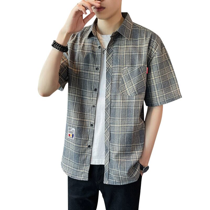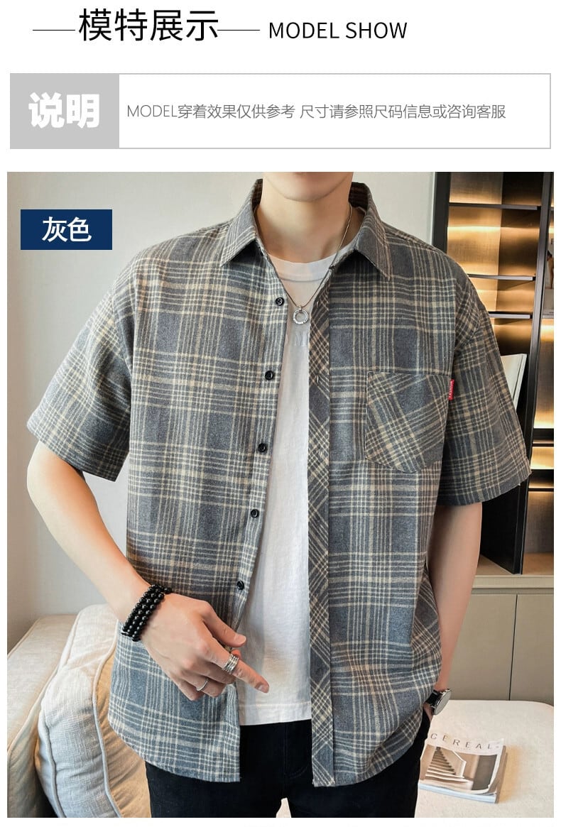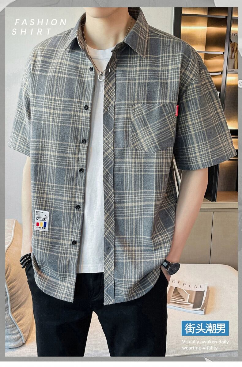 半袖Tシャツメンズシャツ夏薄手カジュアルチェック柄ポロシャツトレンディな高品質アイスシルク5インチシャツ サマー 夏物 undao47115703486