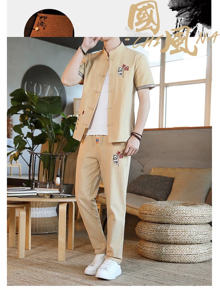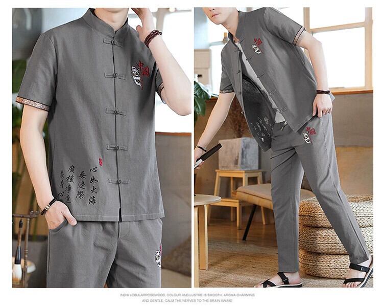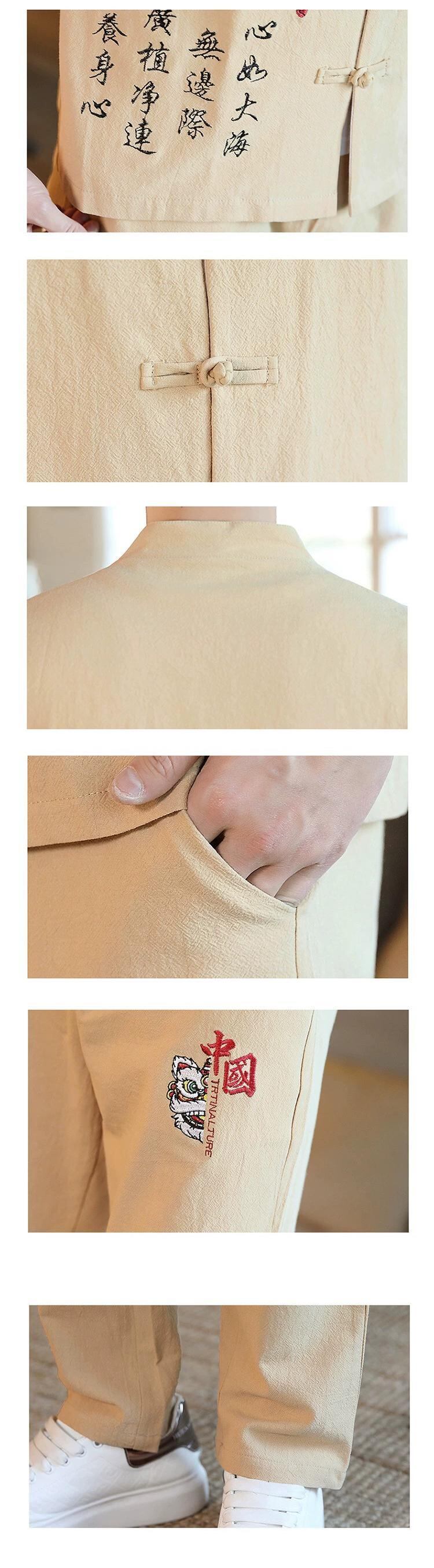 2023 夏の新メンズ唐スーツ tシャツ漢服リネンスーツコットンリネン中国風半袖仏服男性 サマー 夏物 undao53693615759