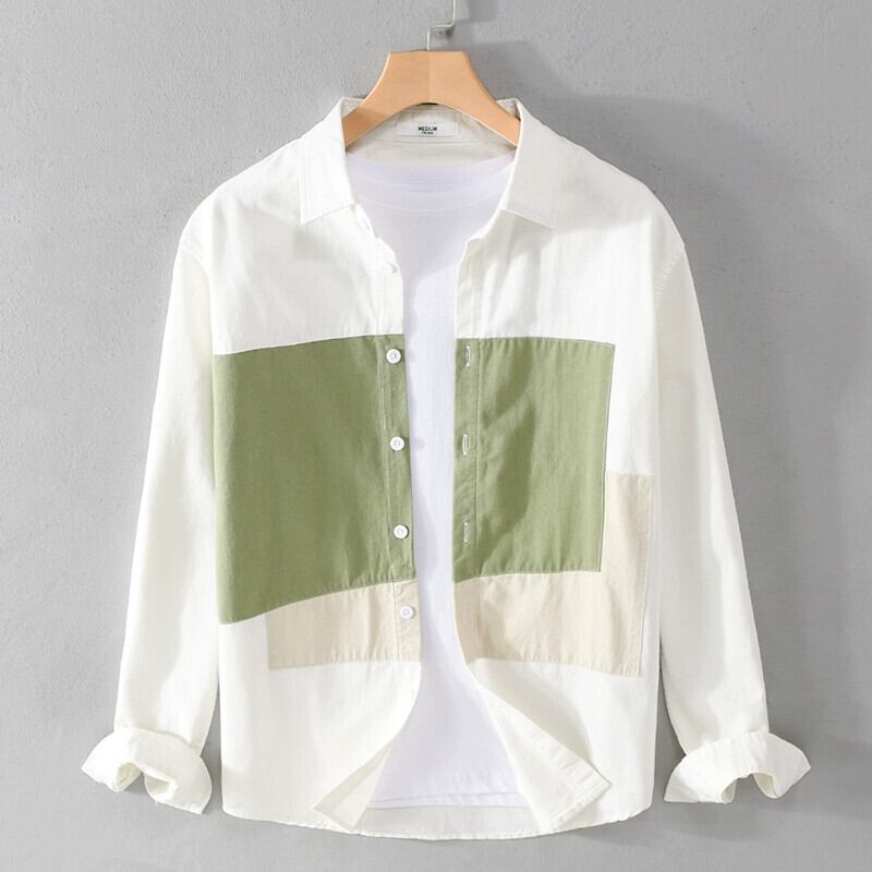 春夏のハイエンドニッチデザインエセカラーマッチングシャツメンズルーズカジュアルコットン長袖シャツジャケットトレンディ ロング スプリング 春物 サマー 夏物 undao60605756531