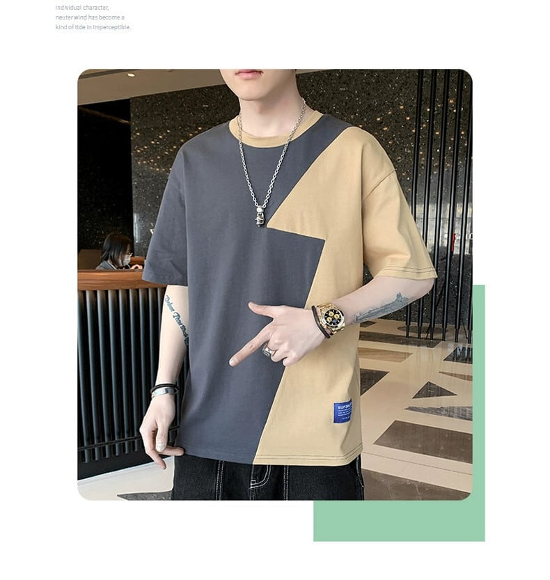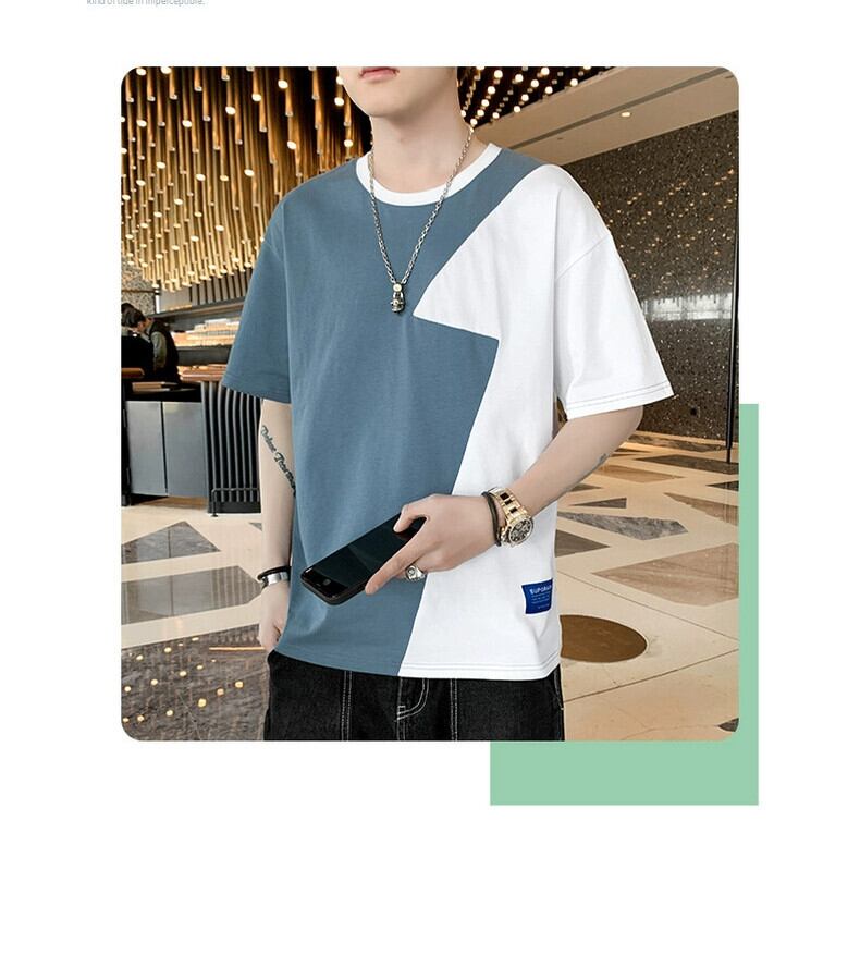 ステッチ半袖メンズ夏のトレンドルーズ五分袖TカラートップスメンズTシャツアイスシルクカジュアルTシャツ レッド サマー 夏物 undao24085316633
