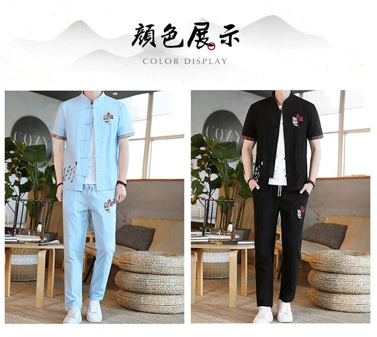 夏の綿とリネンのスーツメンズリネン半袖 tシャツ 2023 新中国風の唐スーツメンズカジュアル古代漢服 コットン サマー 夏物 undao76956149328