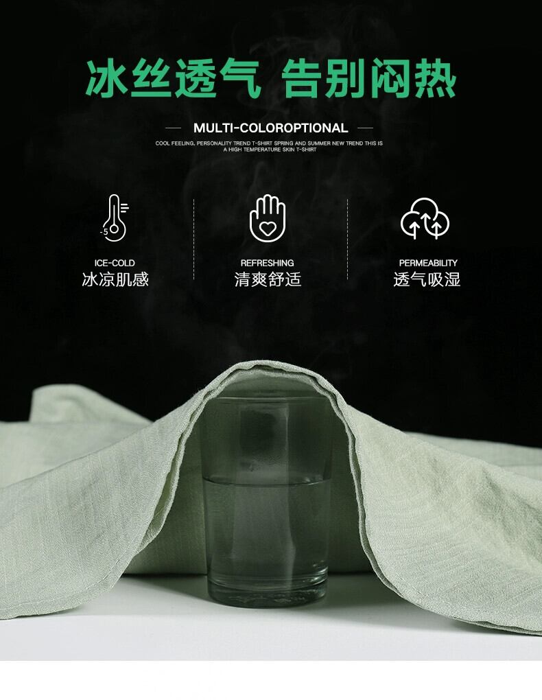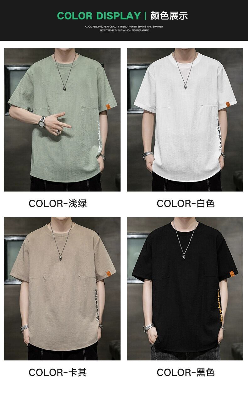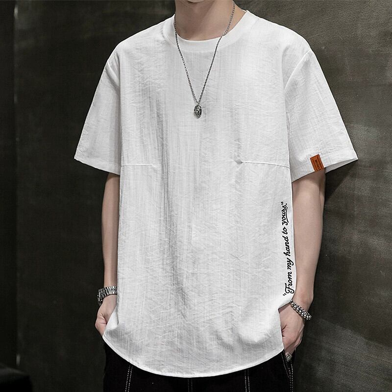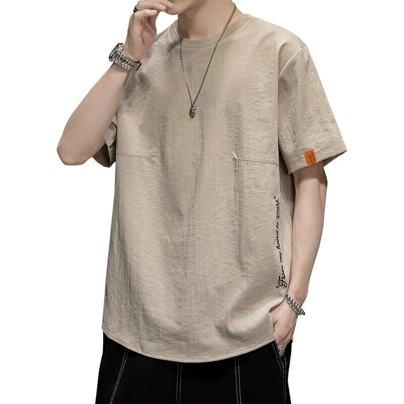 リネンアイスシルク半袖 Tシャツメンズ夏トレンドブランドルーズ半袖 Tシャツボトムシャツトレンド紳士服 サマー 夏物 undao52644066237