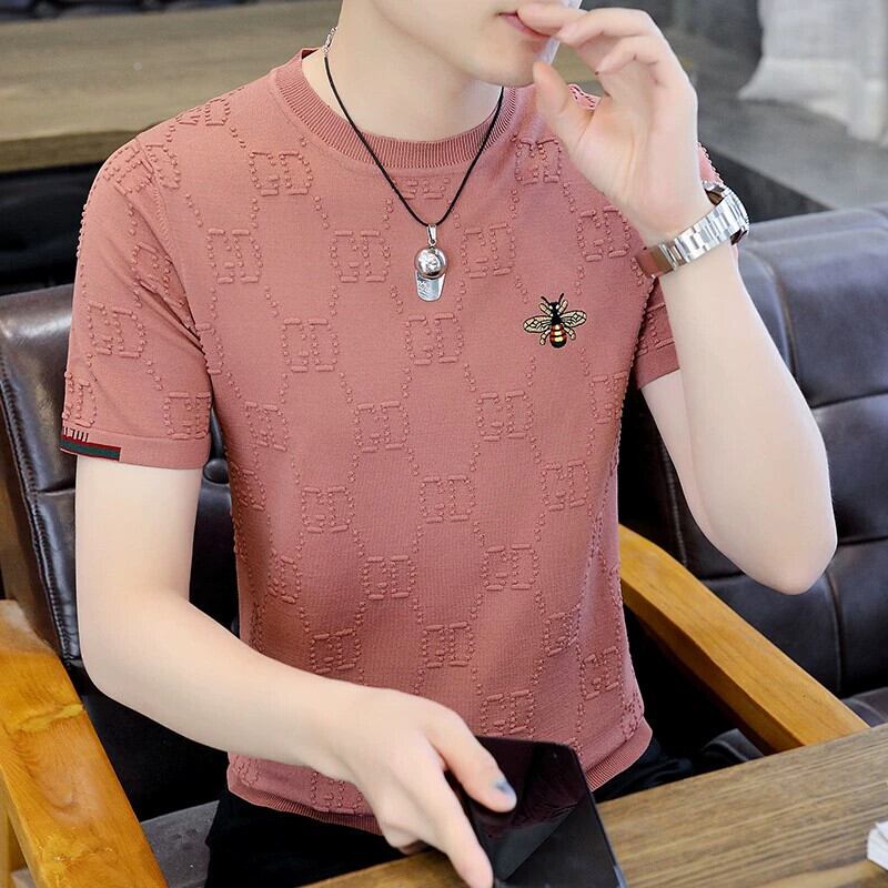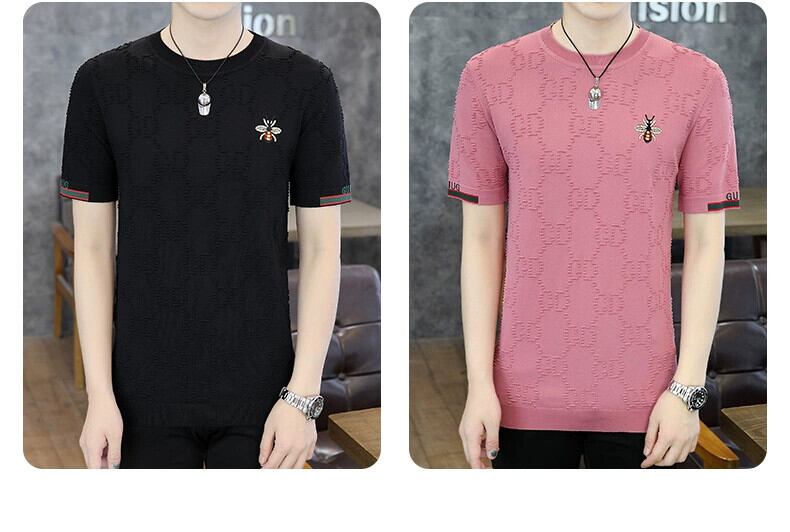 夏潮ブランドハイエンド半袖 Tシャツメンズアイスシルク刺繍ラウンドネック有名ブランドトップメンズアイス麻蜂 Tシャツ サマー 夏物 Oネック undao57039048668
