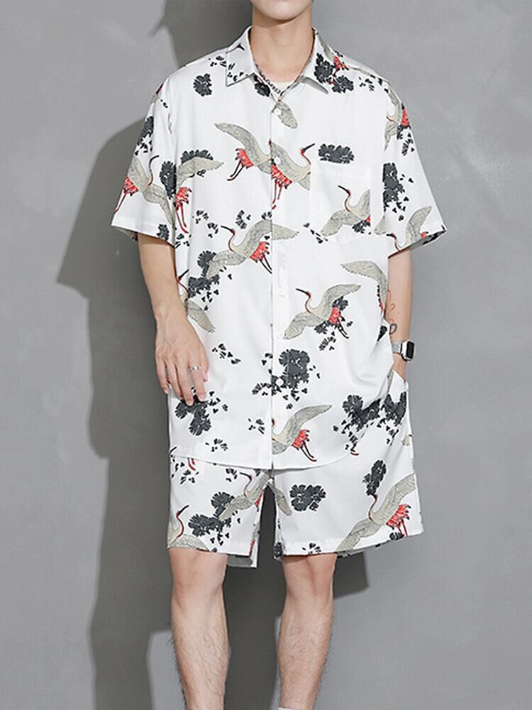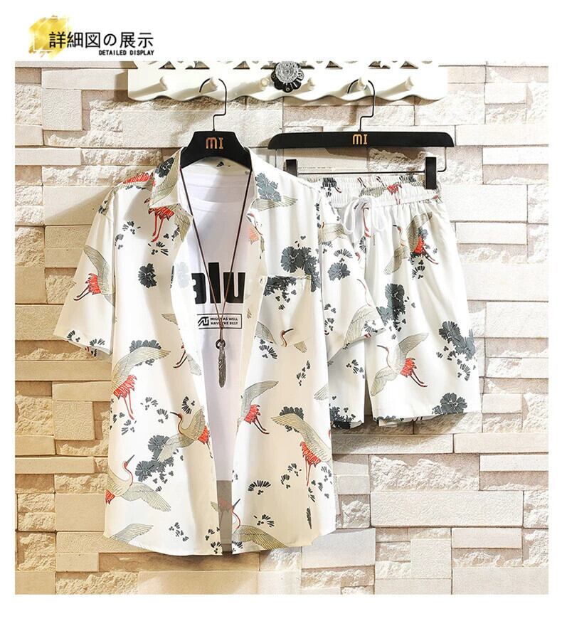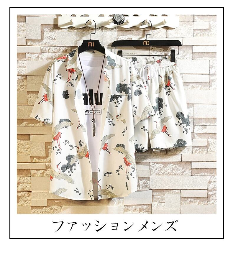 ビーチシャツ男性ハワイアン半袖夏ルーズ通気性カップルスーツ三亜旅行海辺休暇紳士服 サマー 夏物 undao70730246618