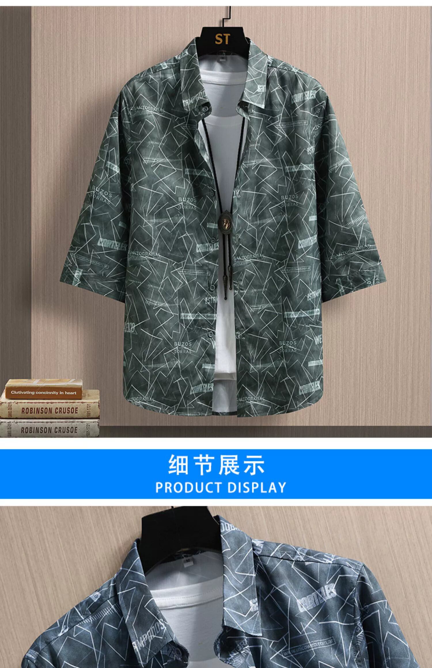 半袖シャツメンズ夏の新しいトレンディなブランドラペルジャケットハンサムで清涼感のある若者のアイスシルク七分袖シャツメンズ サマー 夏物 undao56218905886