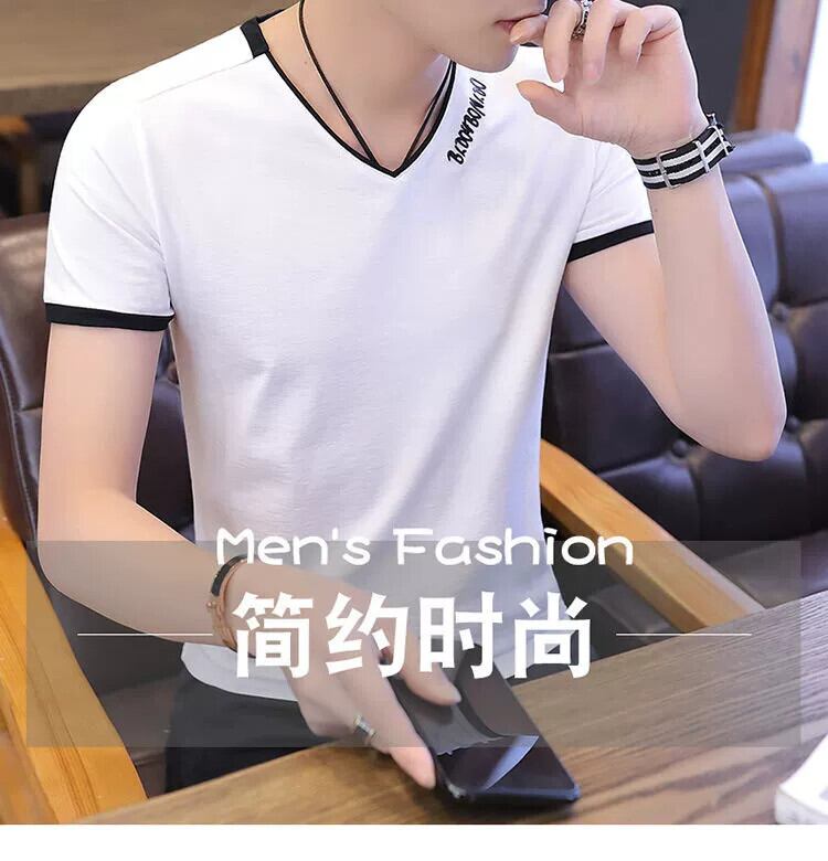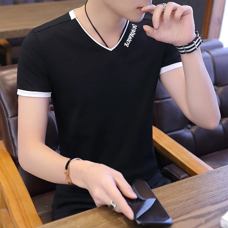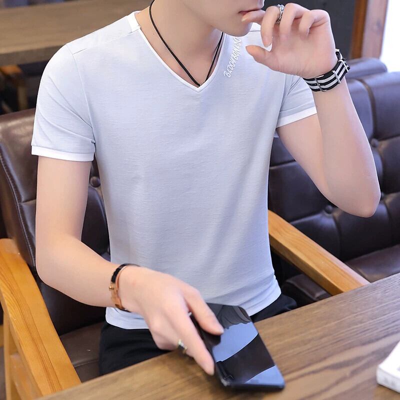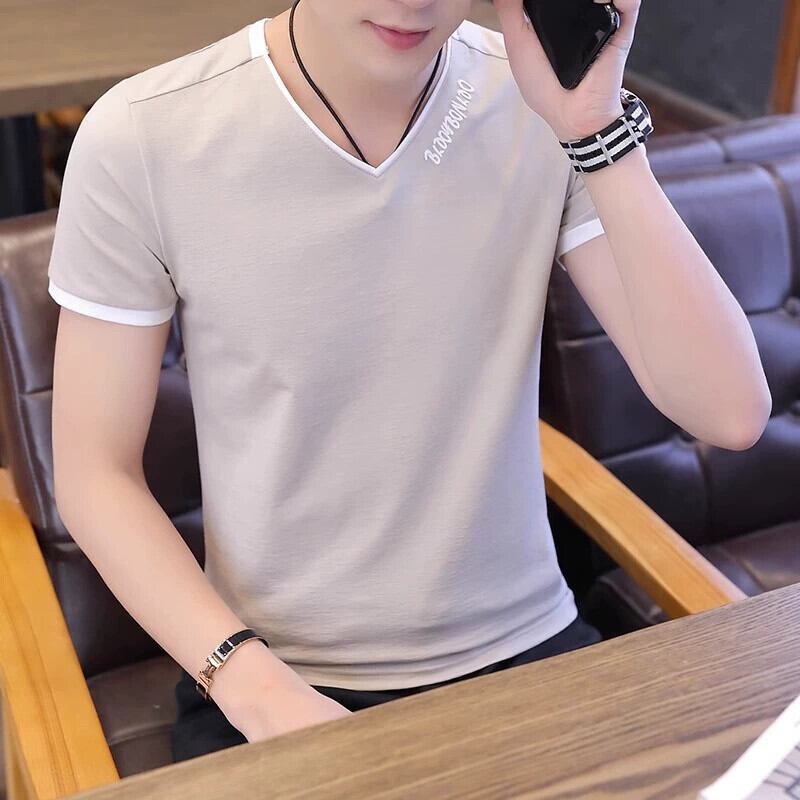 メンズ Tシャツ半袖 V ネック 2023 夏の新トレンド薄いセクションシルケット綿半袖トレンディなブランド若者服 コットン サマー 夏物 Vネック undao94638047679