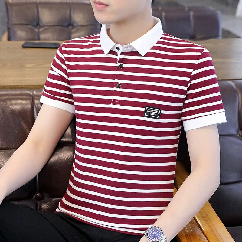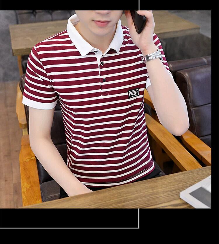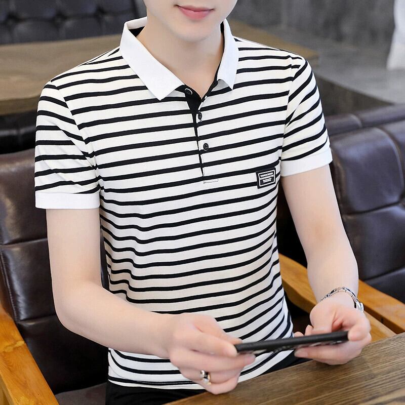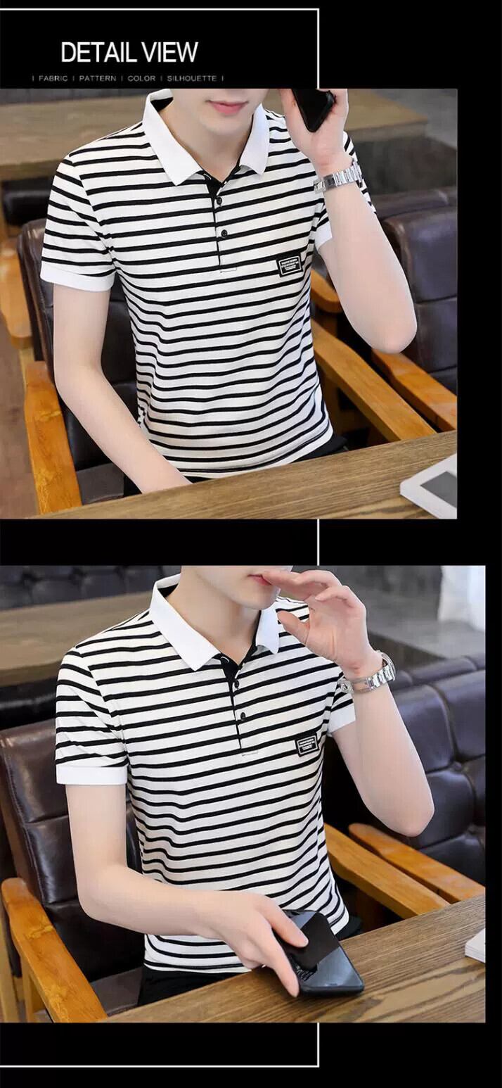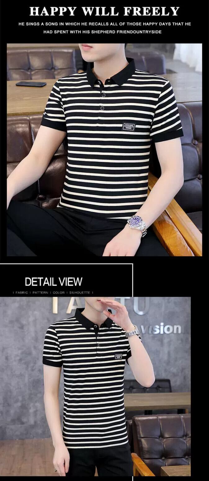 黒と白のストライプ半袖 Tシャツメンズ夏の高級ラペルポール綿ポロシャツ潮ブランドカジュアル半袖 Tシャツ ホワイト ブラック コットン サマー 夏物 undao37505689255