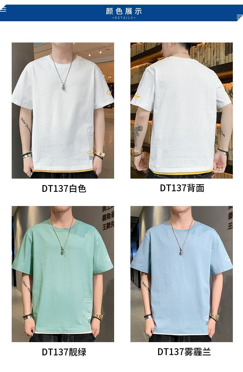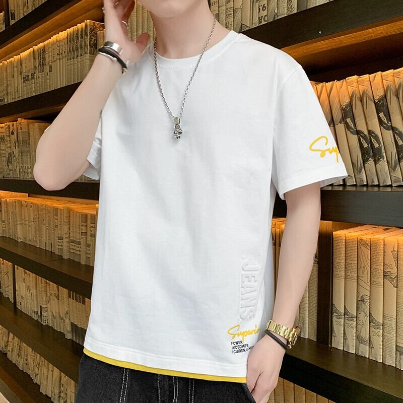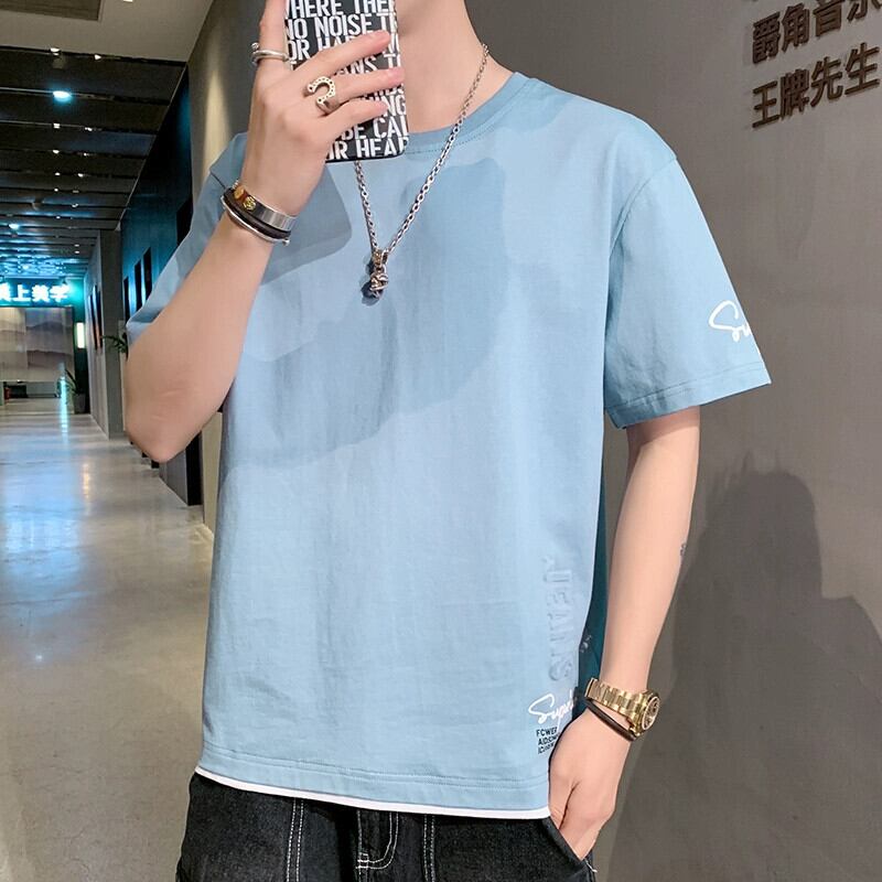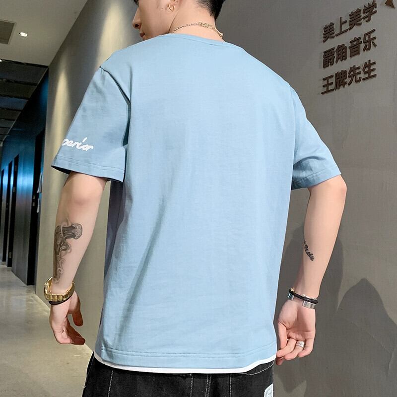 立体プリント半袖Tシャツメンズ夏のトレンド薄手フェイクツーピース純綿半袖トレンディブランドラウンドネックトップ コットン サマー 夏物 Oネック ピュア undao64111920834