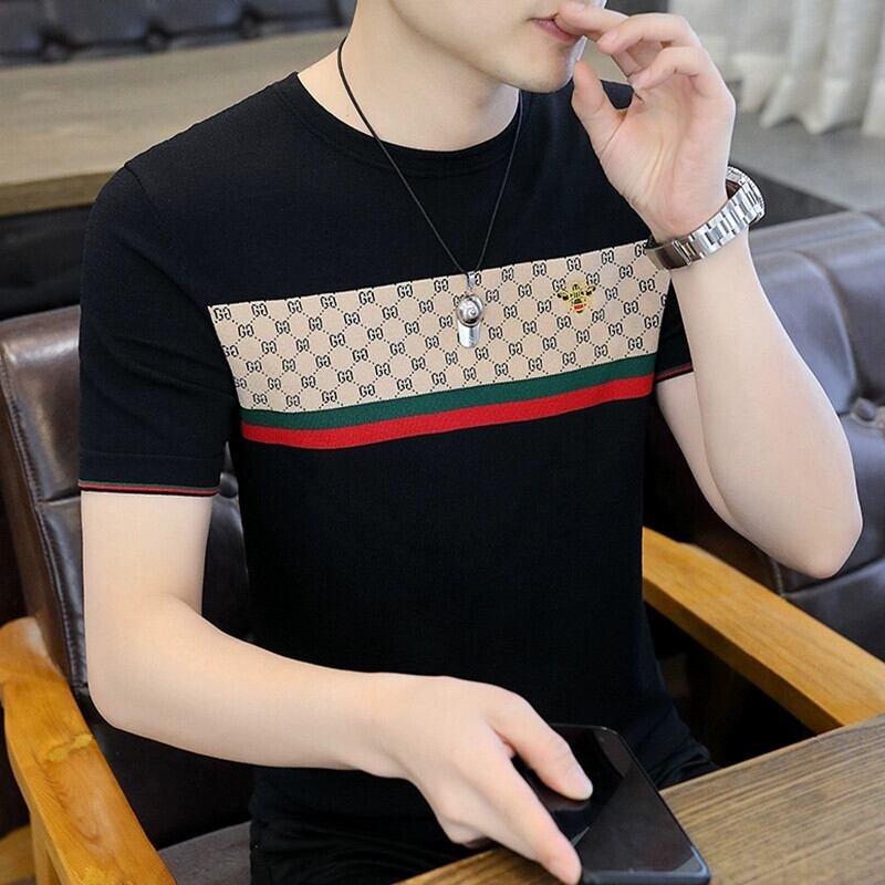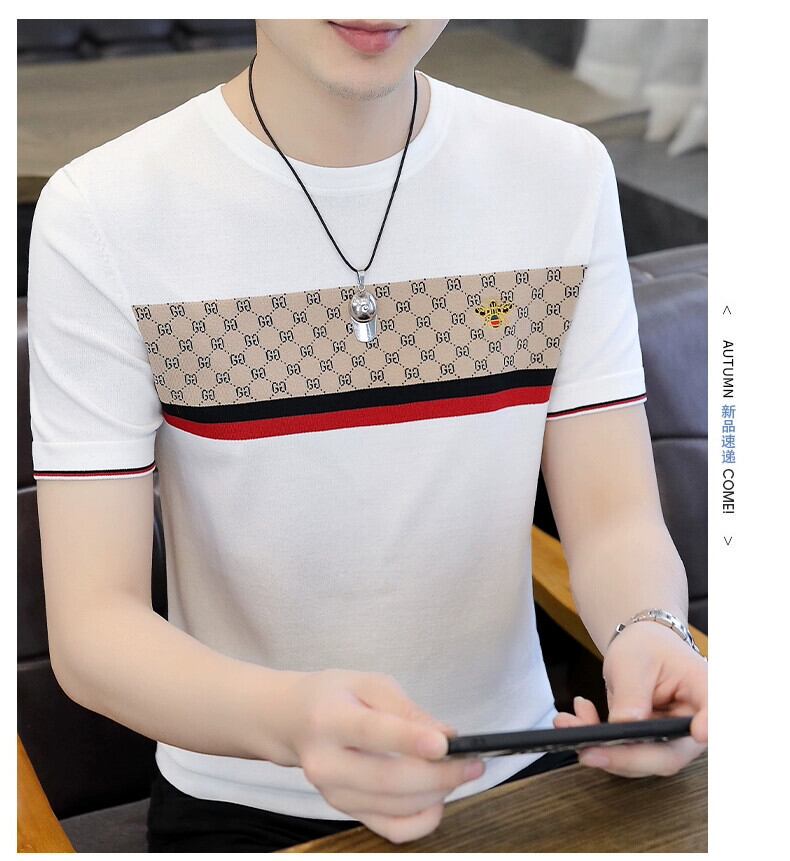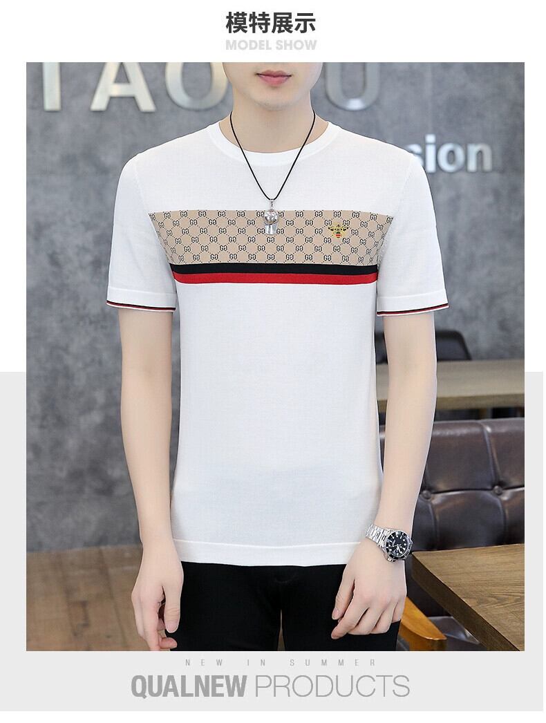 アイスシルク Tシャツメンズニット半袖 2023 夏の新しいハイエンド半袖トップトレンド刺繍 Tシャツ男性 T サマー 夏物 undao55417294114