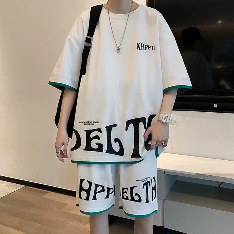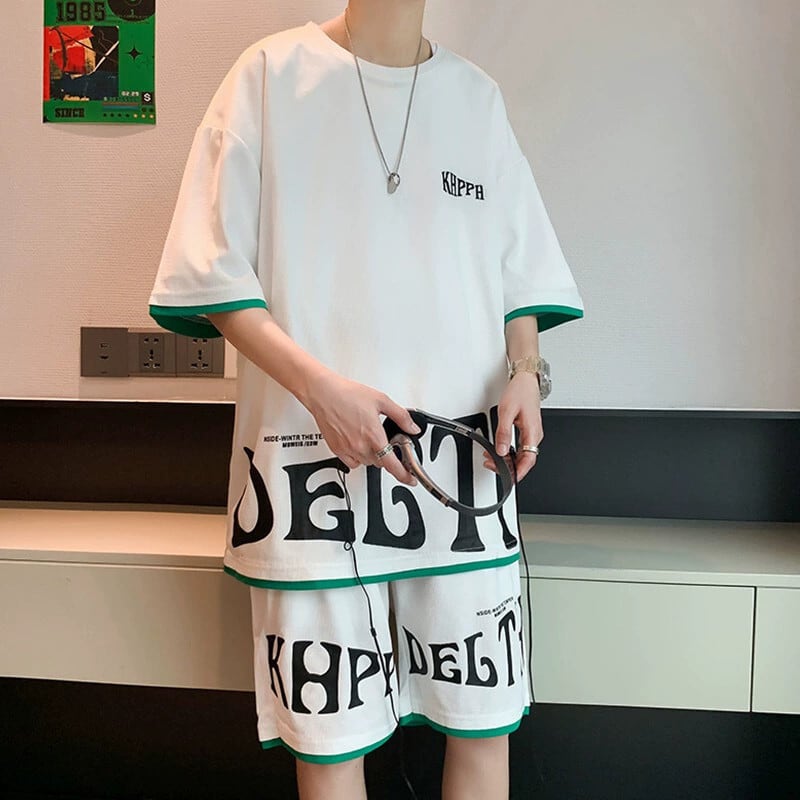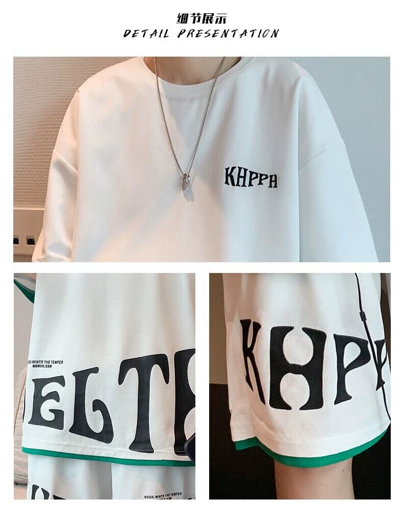 スポーツスーツメンズ夏トレンディブランドトレンドレター半袖紳士服セットハンサムな若者の服 サマー 夏物 undao69271892032